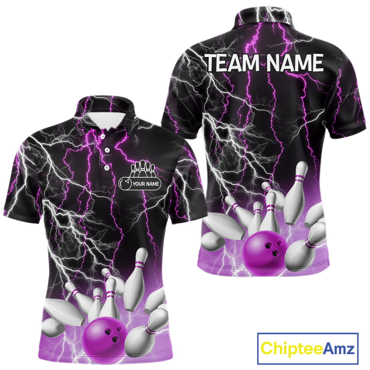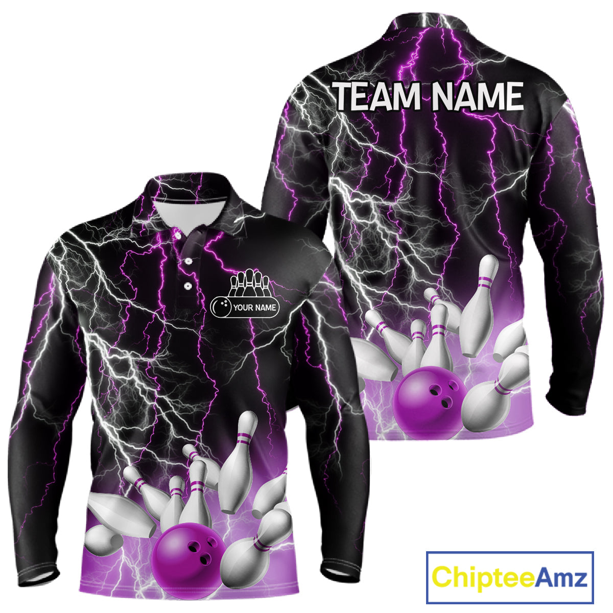 Men's bowling Polo, Quarter Zip shirts Custom Purple lightning thunder team bowling league jerseys NQS11263