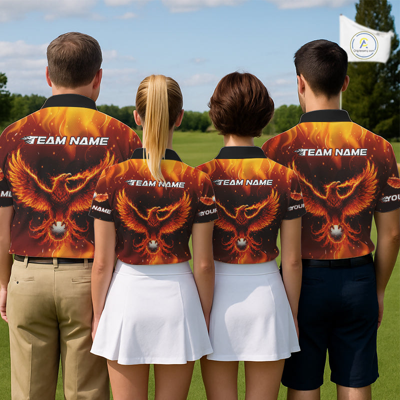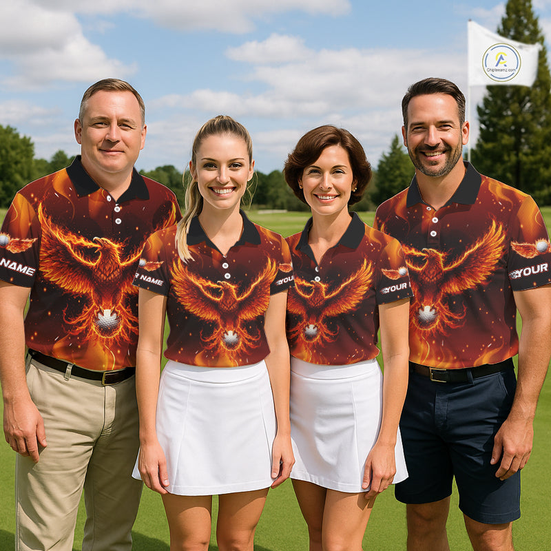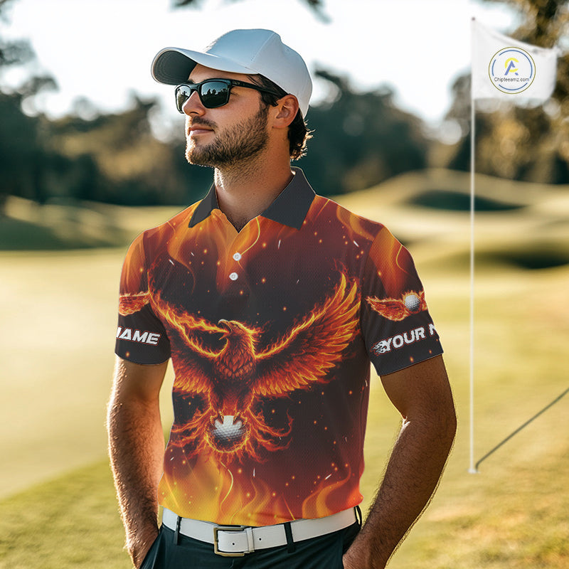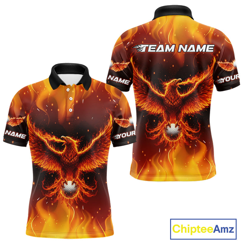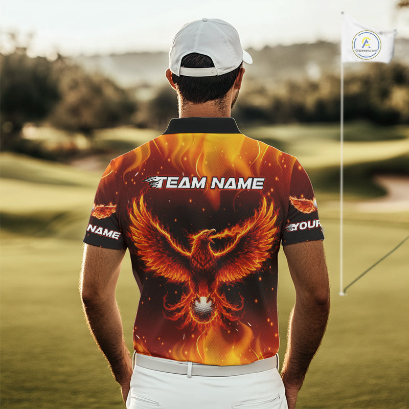 Mens Golf Polo Shirt Custom Phoenix Red Flame Team Golf Tops, White Golf Outfit For Men NHN0077