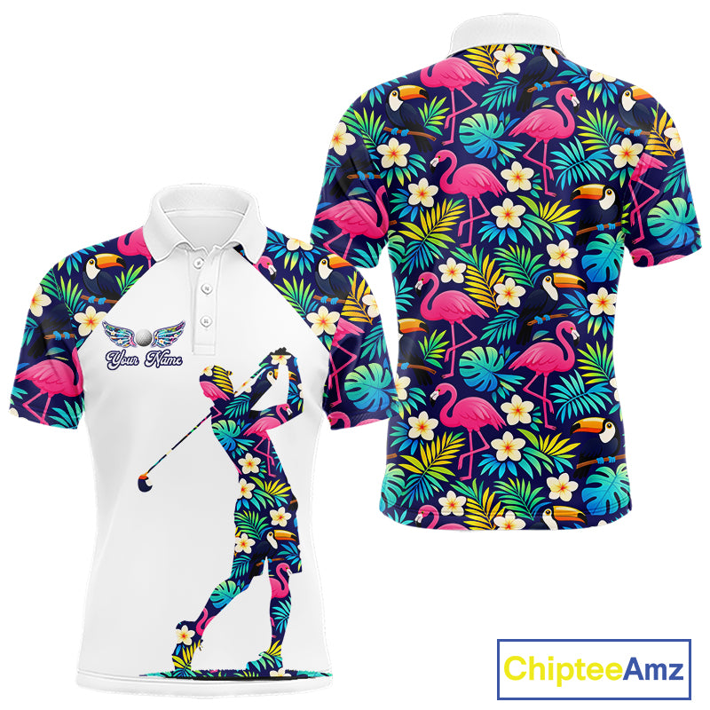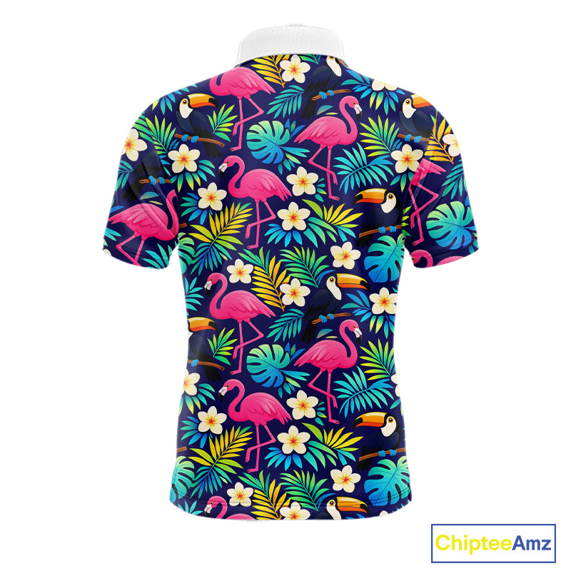 Mens Golf Polo Shirt Custom Toucan Tropical Leaf Pattern Flamingo Golf Shirts For Men NHN0099