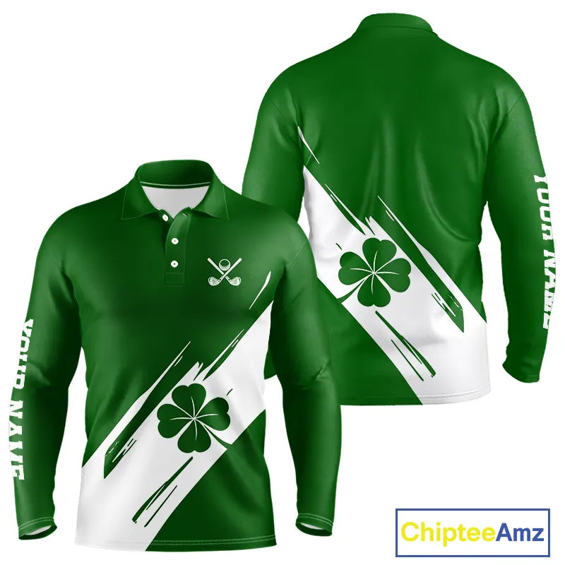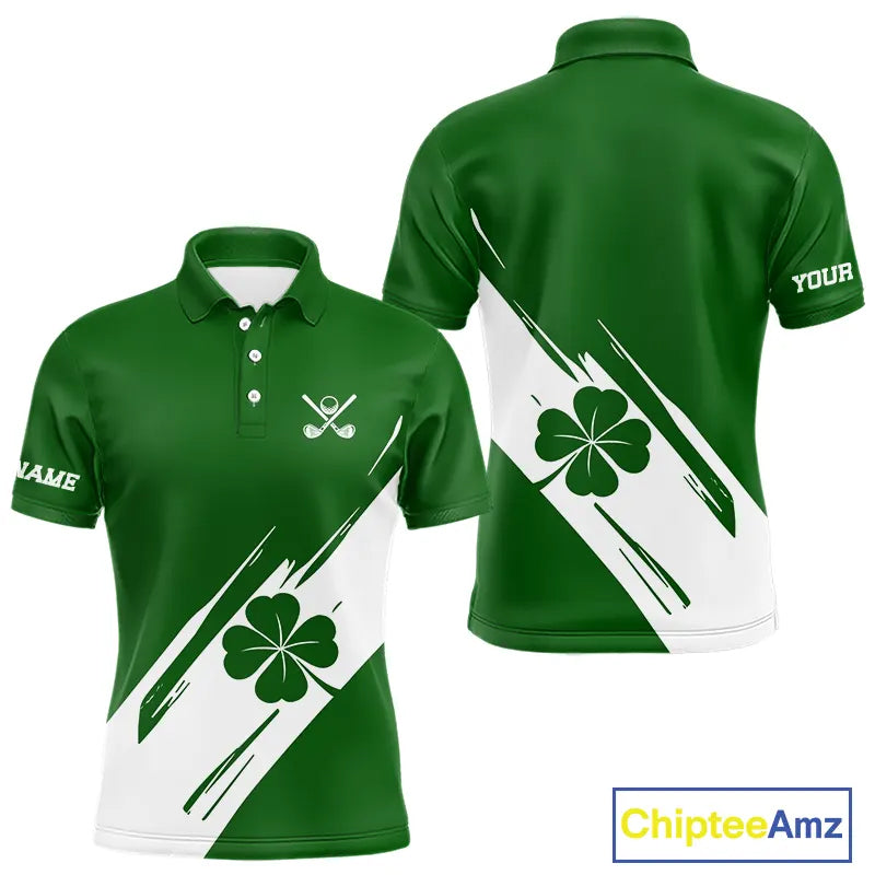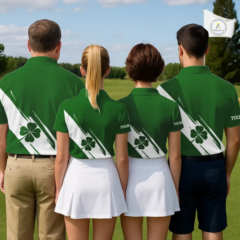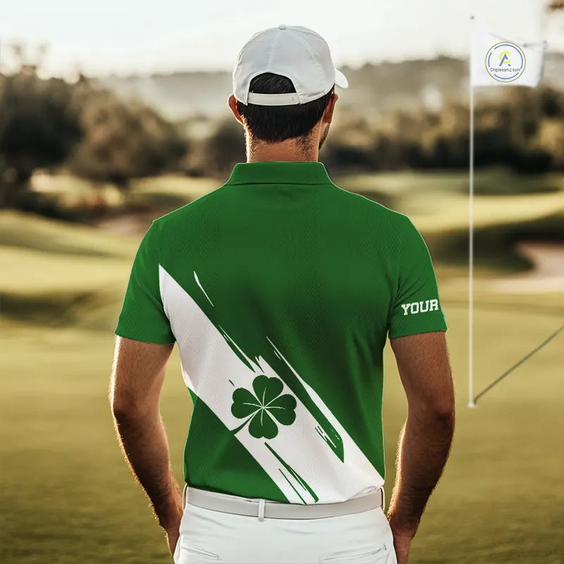 Mens golf polo shirts White and Green Shamrock custom St Patrick's Day team golf shirts for men NQS11639