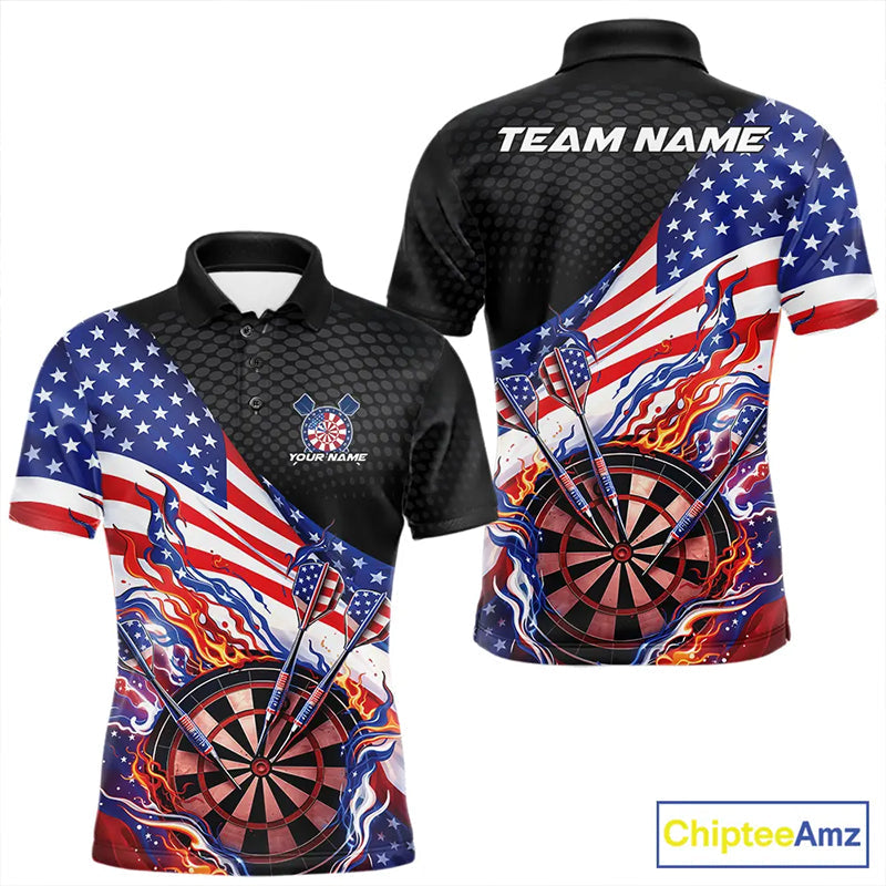 Custom Patriotic Dart Multi Styles Shirts For Men, Women And Kids, US Flag Flame Dartboard Dart Team Jerseys IPHW10407