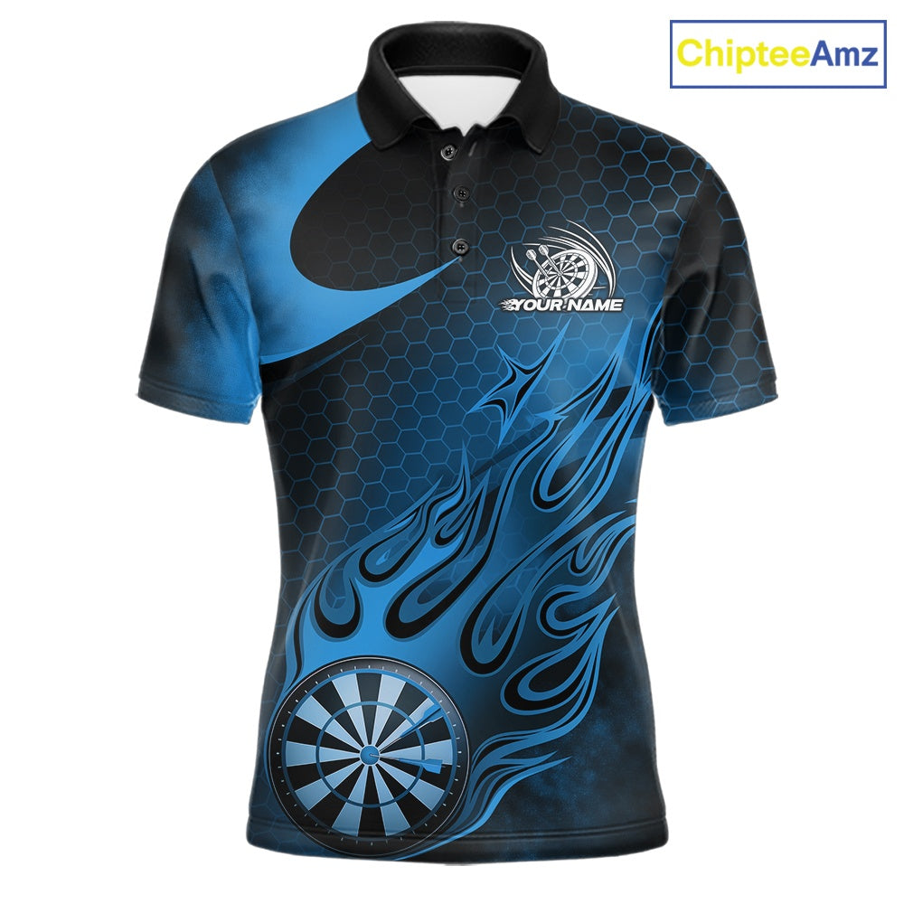 Custom Black And Blue Flame Dartboard Darts Team Shirts, Dart Tournament Outfits Dart Jerseys For Players IPHW10411