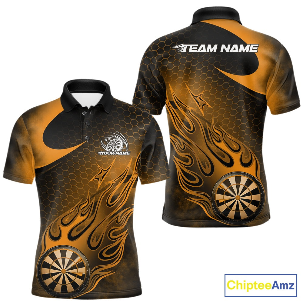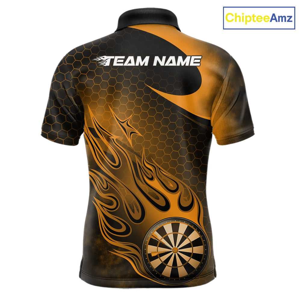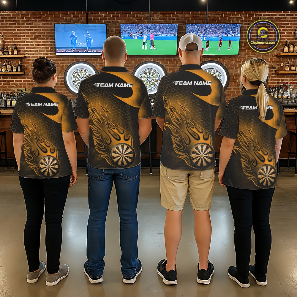 Custom Black And Yellow Flame Dartboard Darts Team Shirts, Dart Tournament Outfits Dart Jerseys For Players IPHW10413