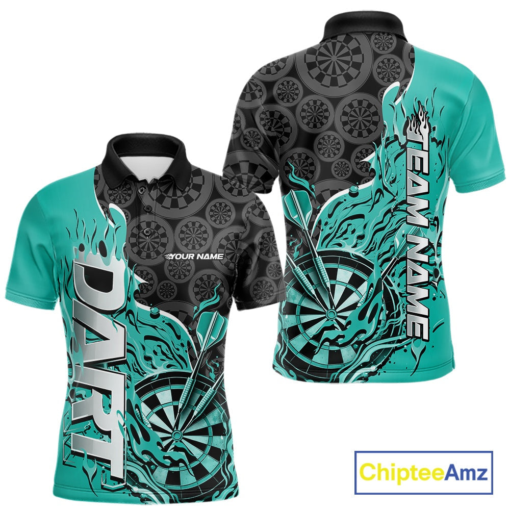 Custom Black And Turquoise Blue Flame Dartboard Dart Jerseys, Dartboard Pattern Darts Tournament Team Shirts IPHW10418