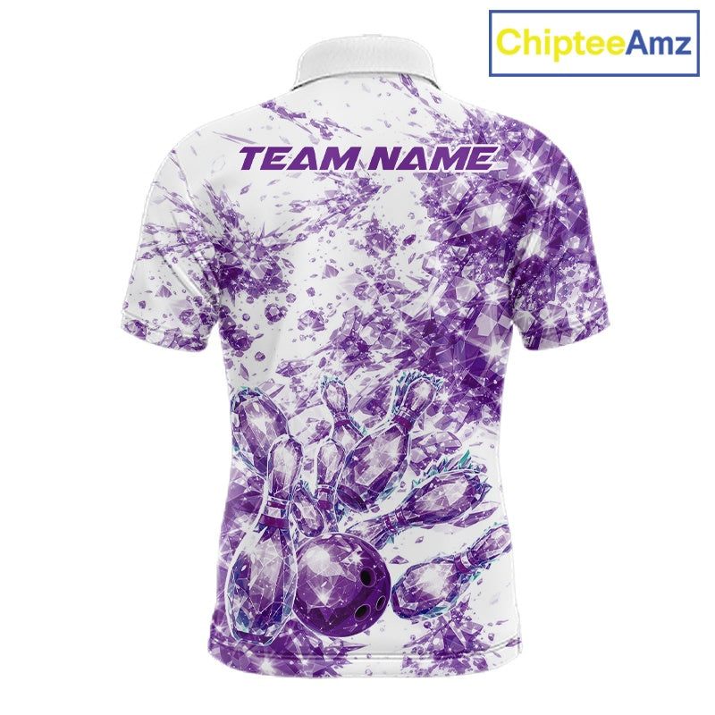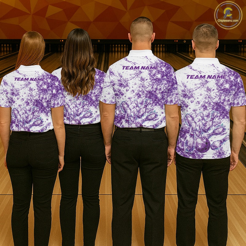 Custom Sparkling Purple Ice Cystal Bowling Shirts For Men, Women And Kid, Team Tournament Outfits Multi Styles IPHW10421