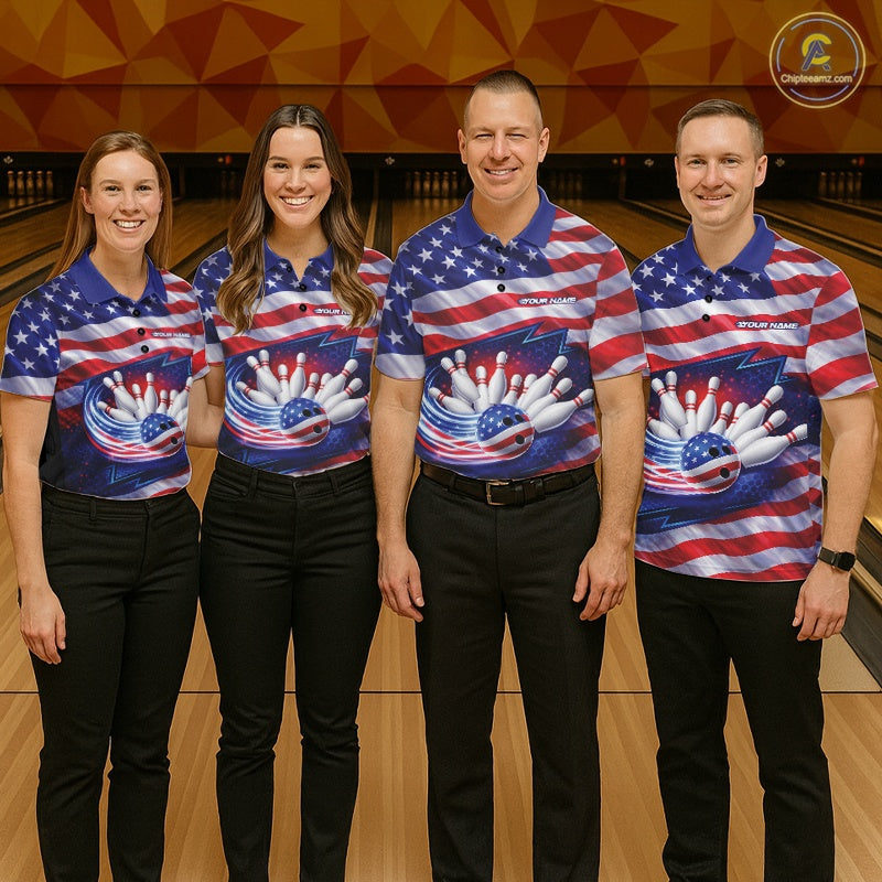Custom Patriotic US Flag Bowling Team Shirts, 4Th Of July Bowling League Shirt Freedom Bowling Jerseys IPHW10426