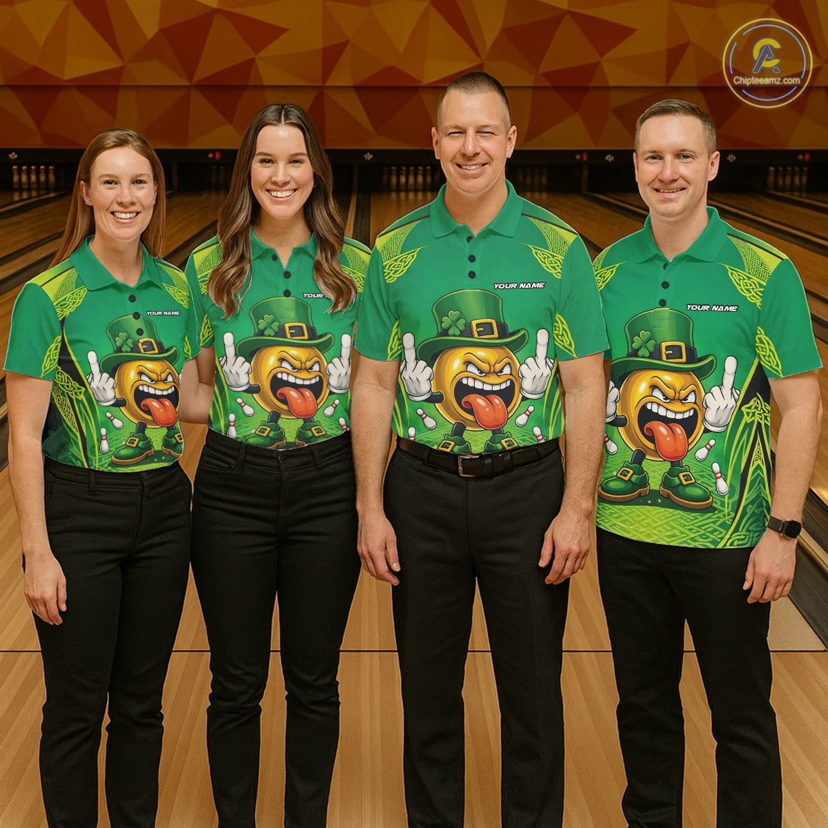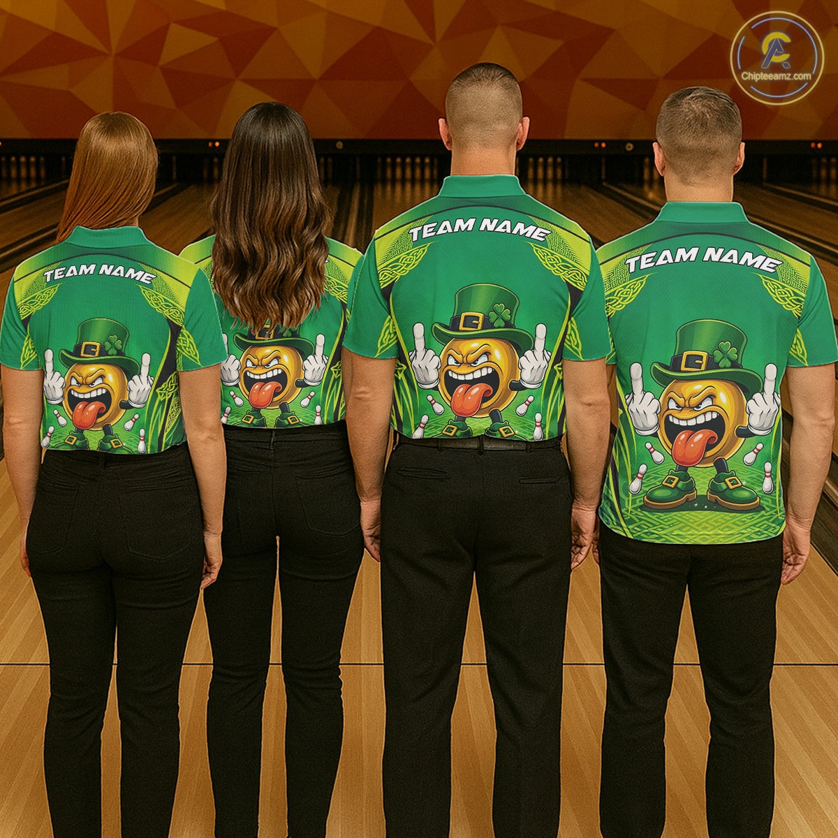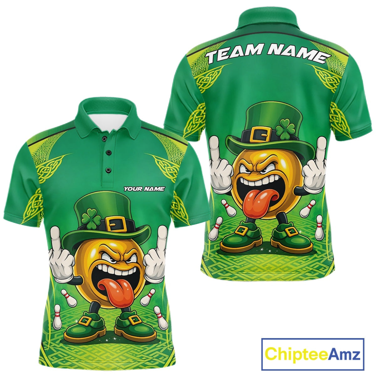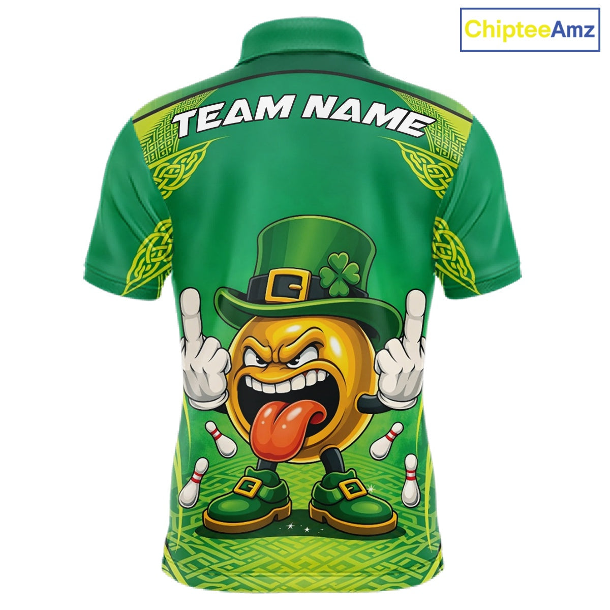 Custom Funny Leprechaun Bowling Ball St Patricks Day Bowling Shirts, Celtic Pattern Bowling Tournament Outfits IPHW10443