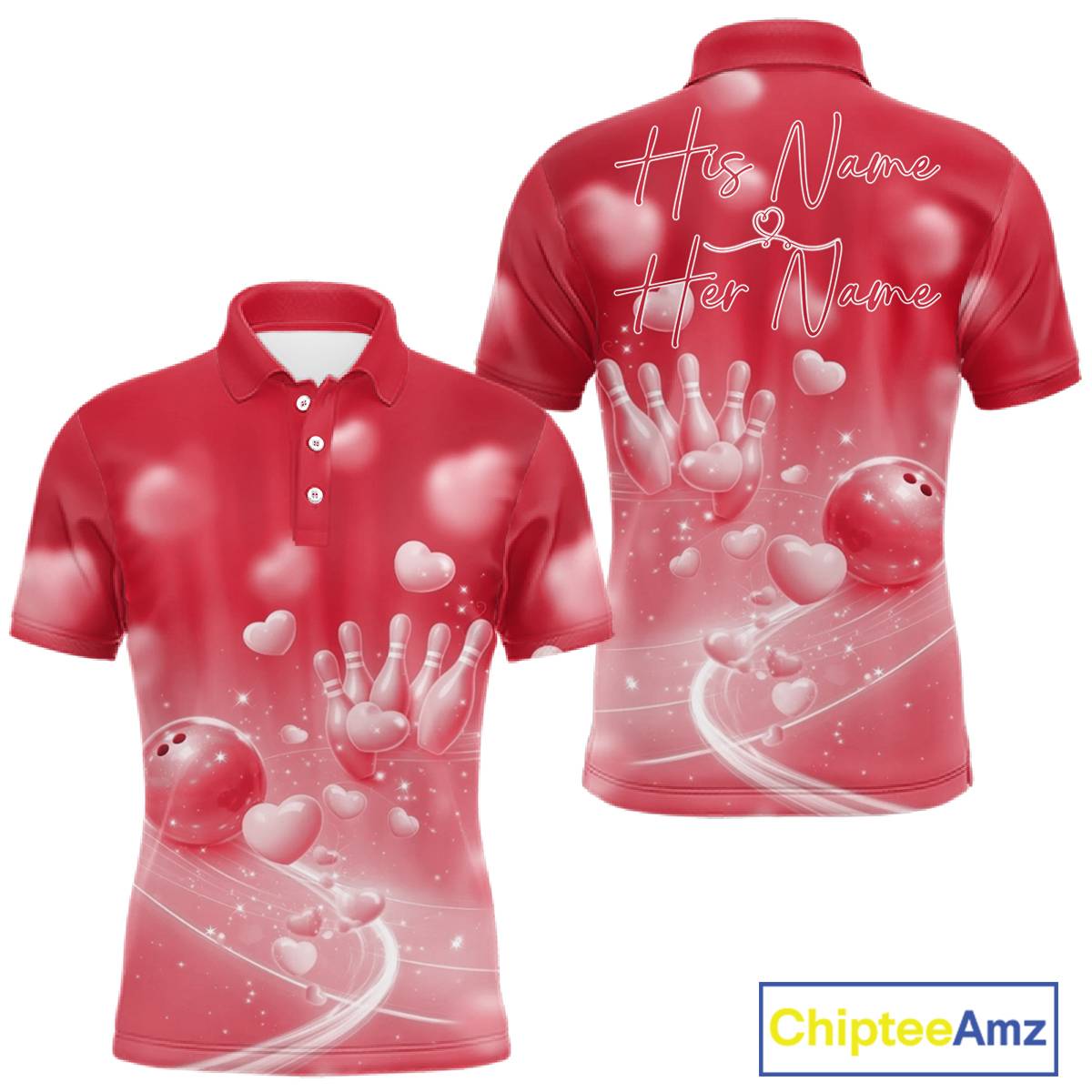 Custom Red Valentine Bowling Couple Shirts, Red Heart Theme Bowling Jerseys With His Name And Her Name IPHW10469