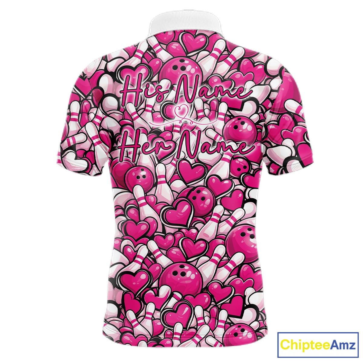 Custom Pink Heart Theme Valentine Bowling Couple Shirt, Love Bowling Jerseys With His Name And Her Name IPHW10476