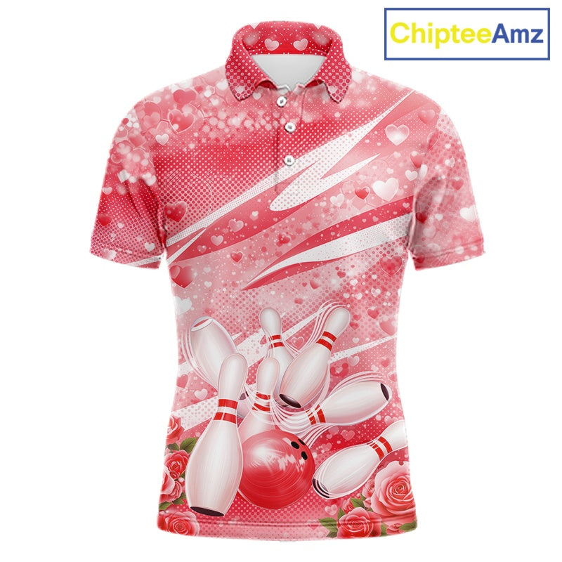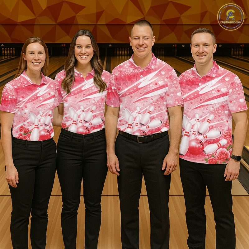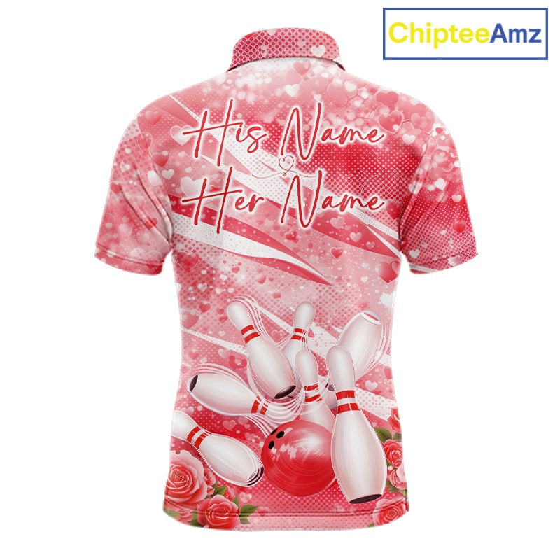 Custom Red Heart Valentine Bowling Couples Shirt, Heart And Roses Bowling Husband And Wife Gifts With Name IPHW10517