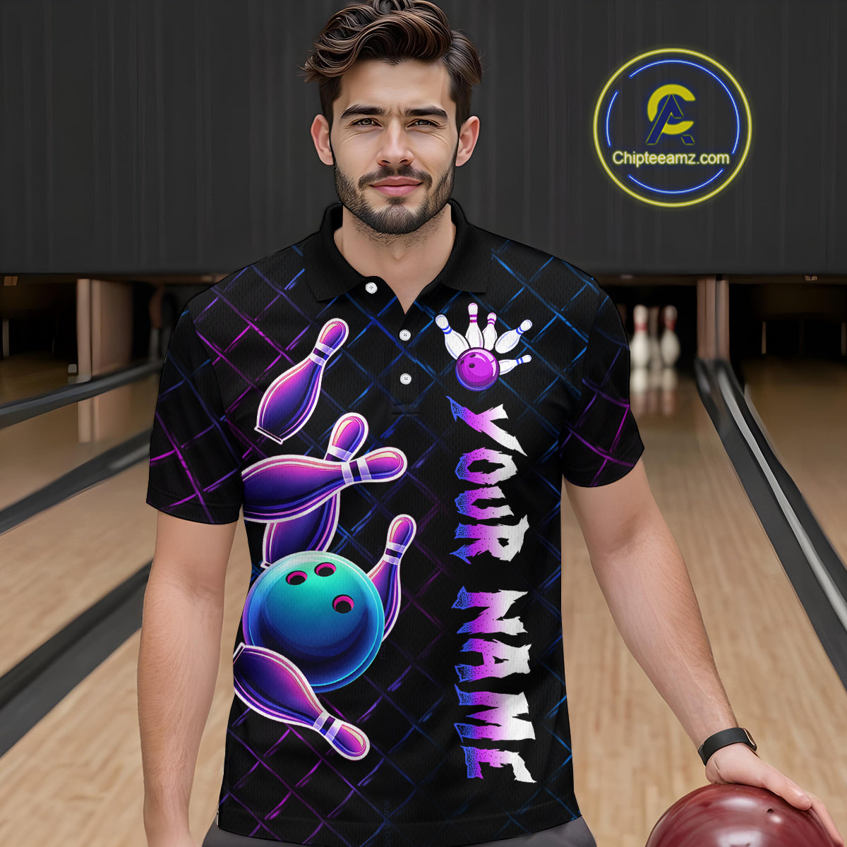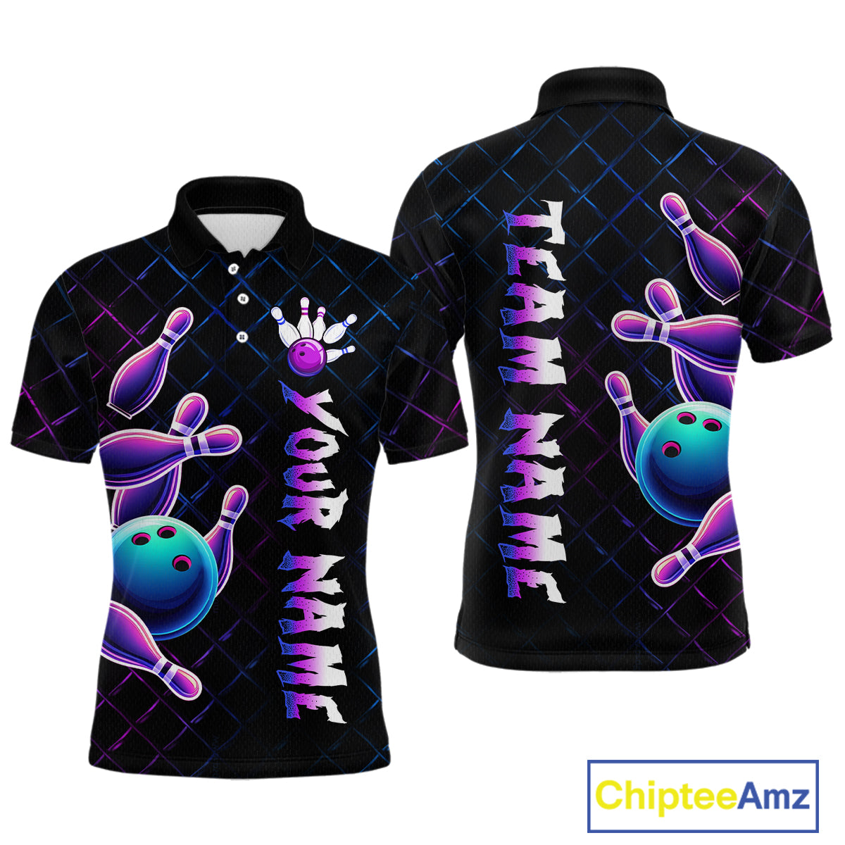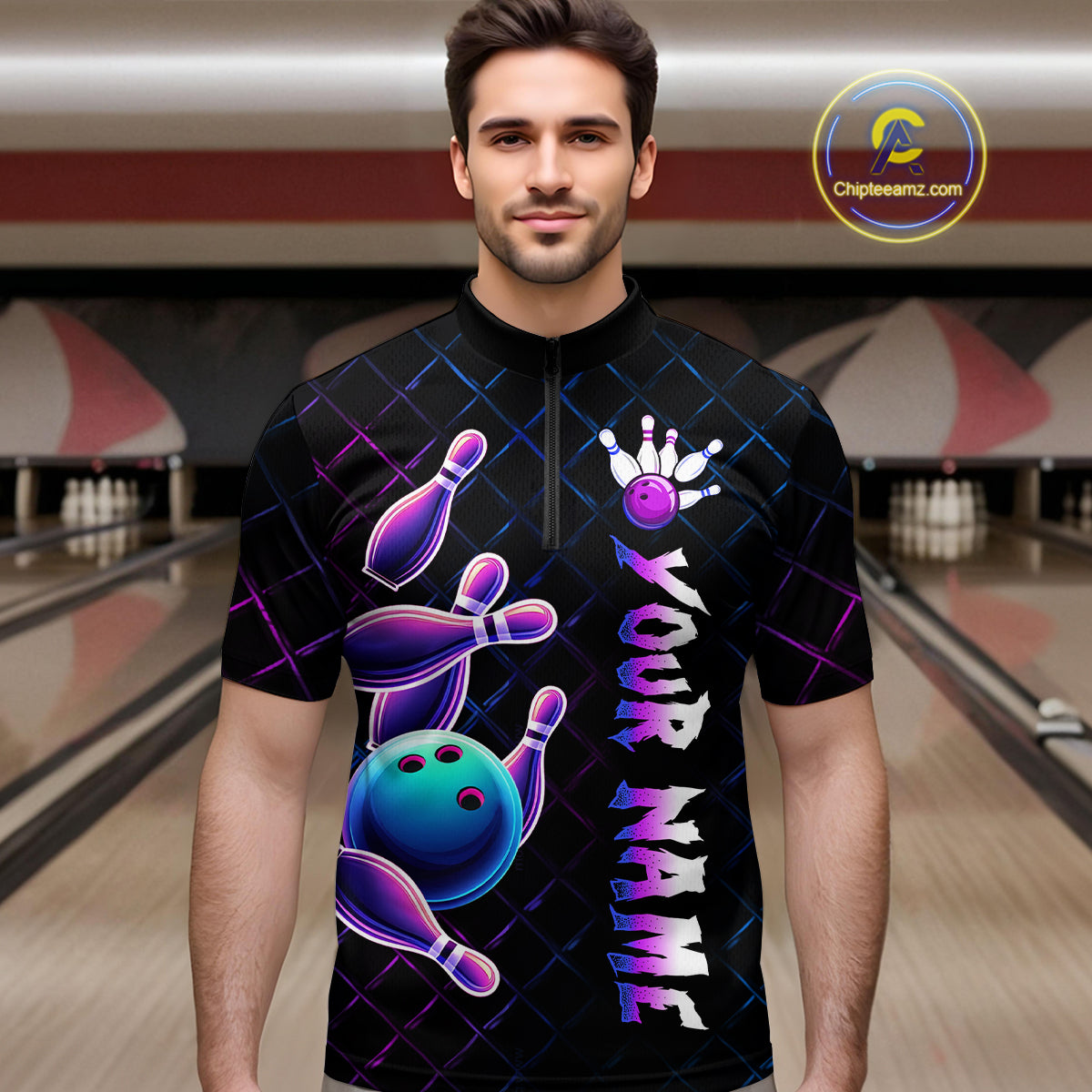 Neon Bowling Custom Men Bowling Shirt Polo & Quarter-Zip Bowling Team Jerseys HNT70