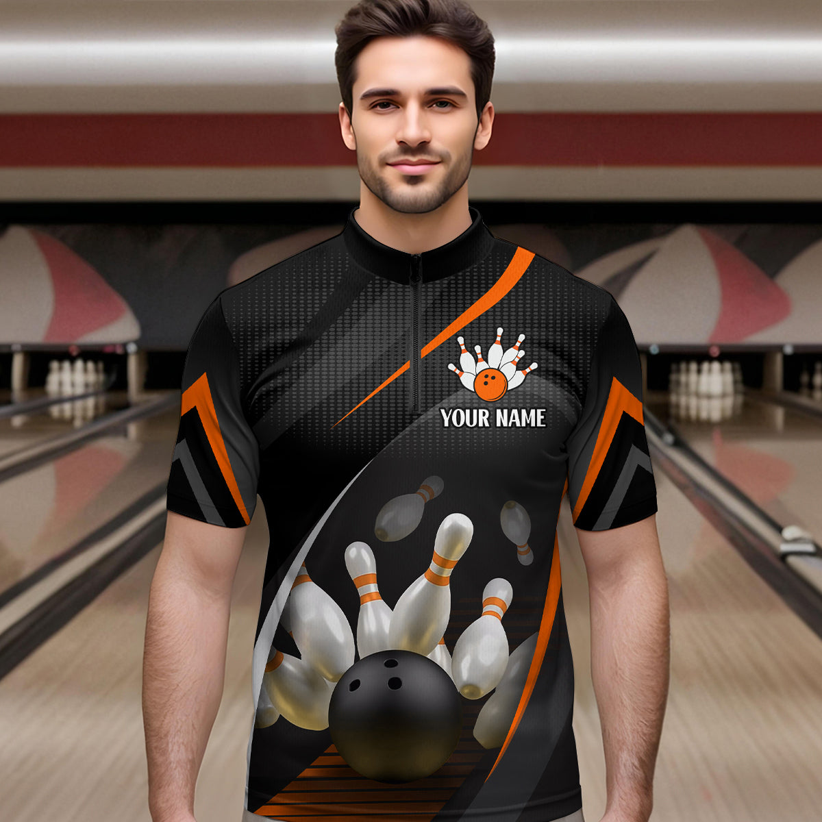 Orange Bowling Shirts for Men Women Team Custom Bowling Polo & Quarter Zip Shirt MBL71