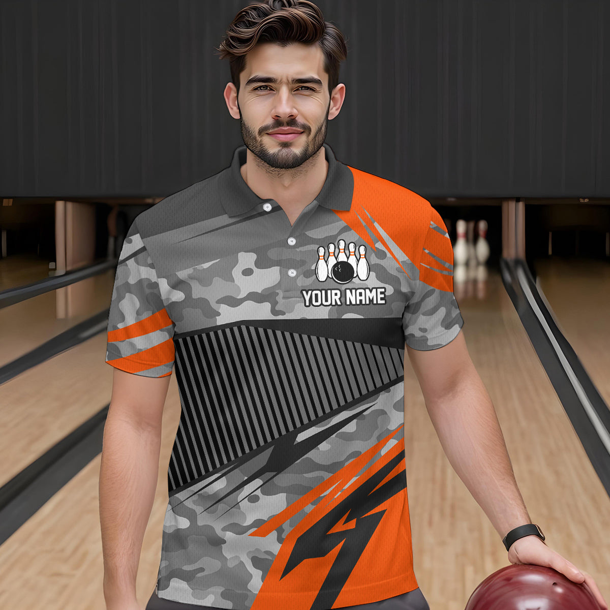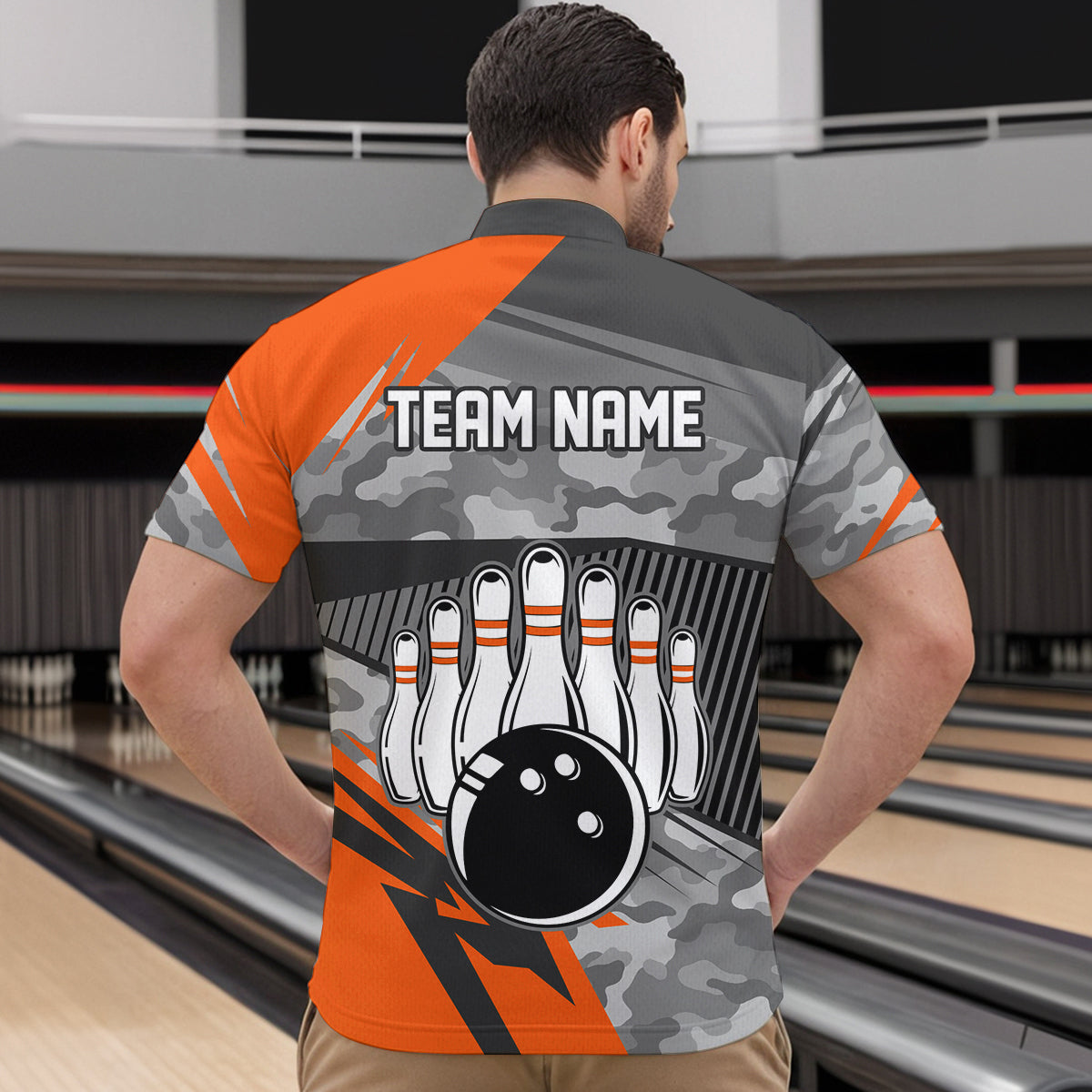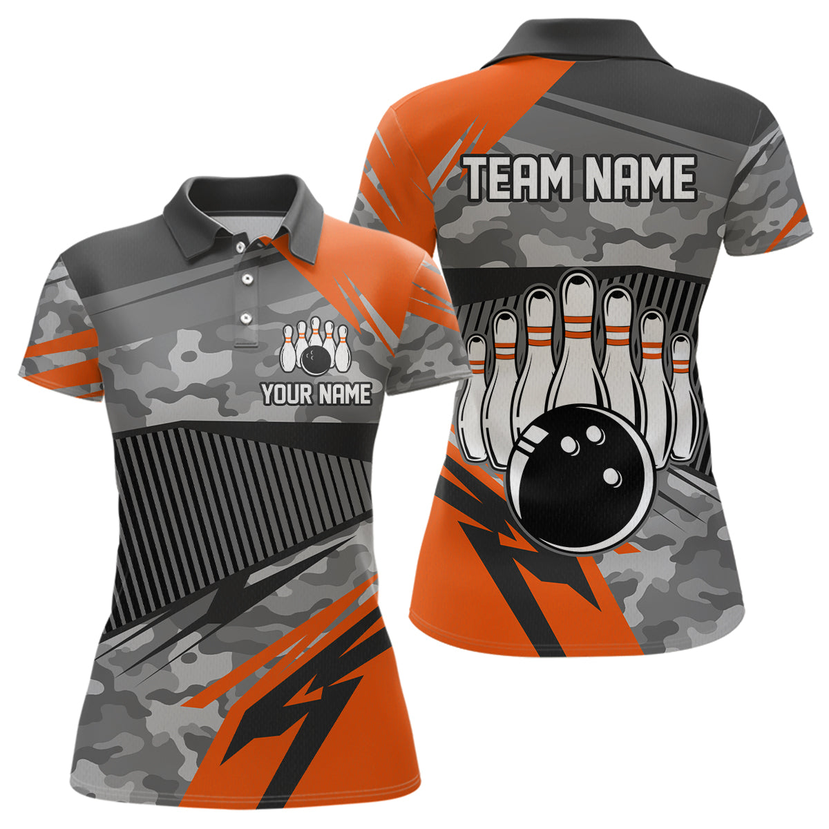 Orange Camo Bowling Shirts for Women Men Custom Team Bowling Polo & 1/4 Zip Shirt MBL61