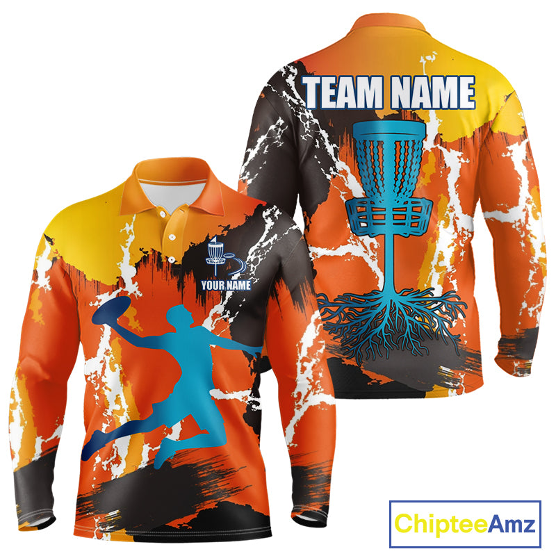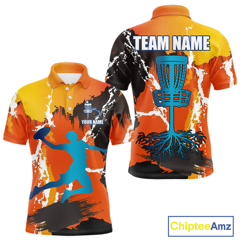 Orange Disc Golf Basket Men Disc Golf Polo Shirts Custom Name Camo Disc Golf Team Shirts For Men NHN0034