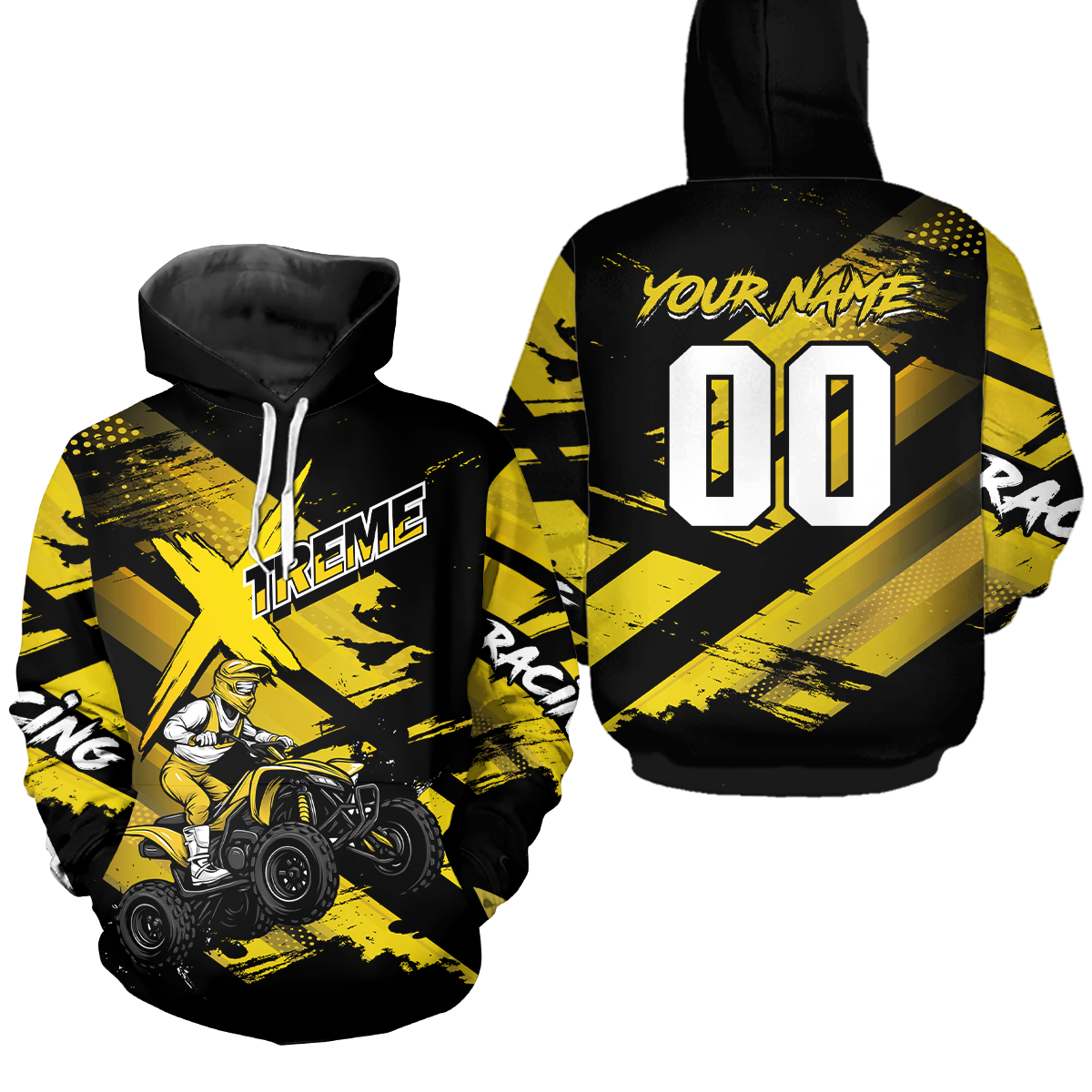 Personalized Atv Motocross Hoodie For Adult&Kid Upf30+ Yellow Quad Bike Shirt Off-Road Atv Mx Racing NHN012