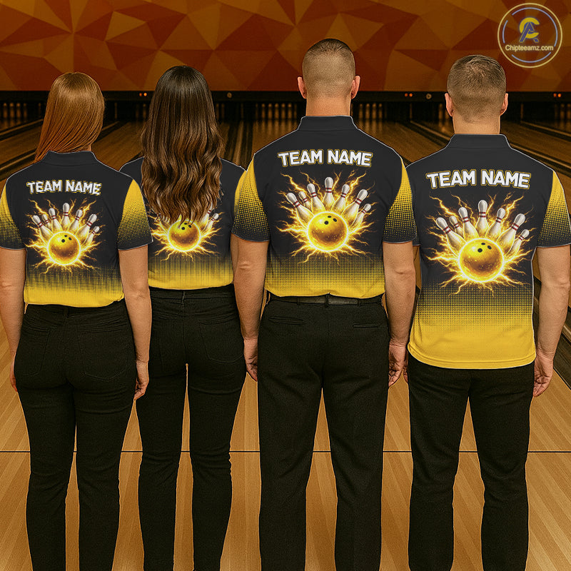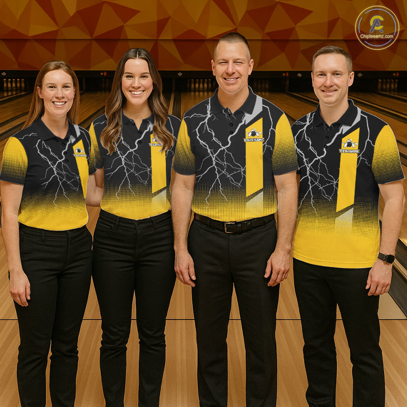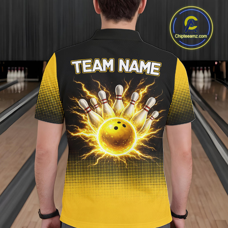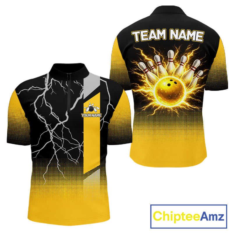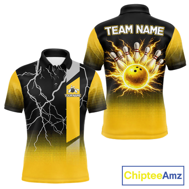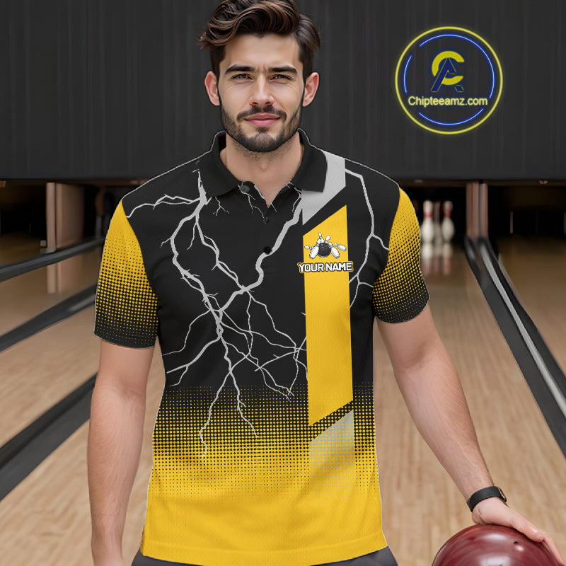 Personalized black and yellow bowling shirt for men lightning thunder custom bowling gifts for men NQS11377