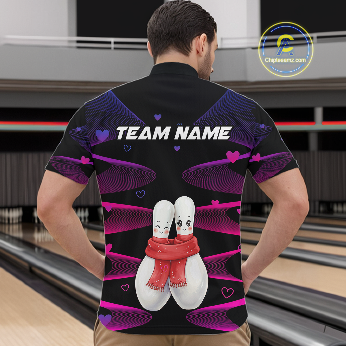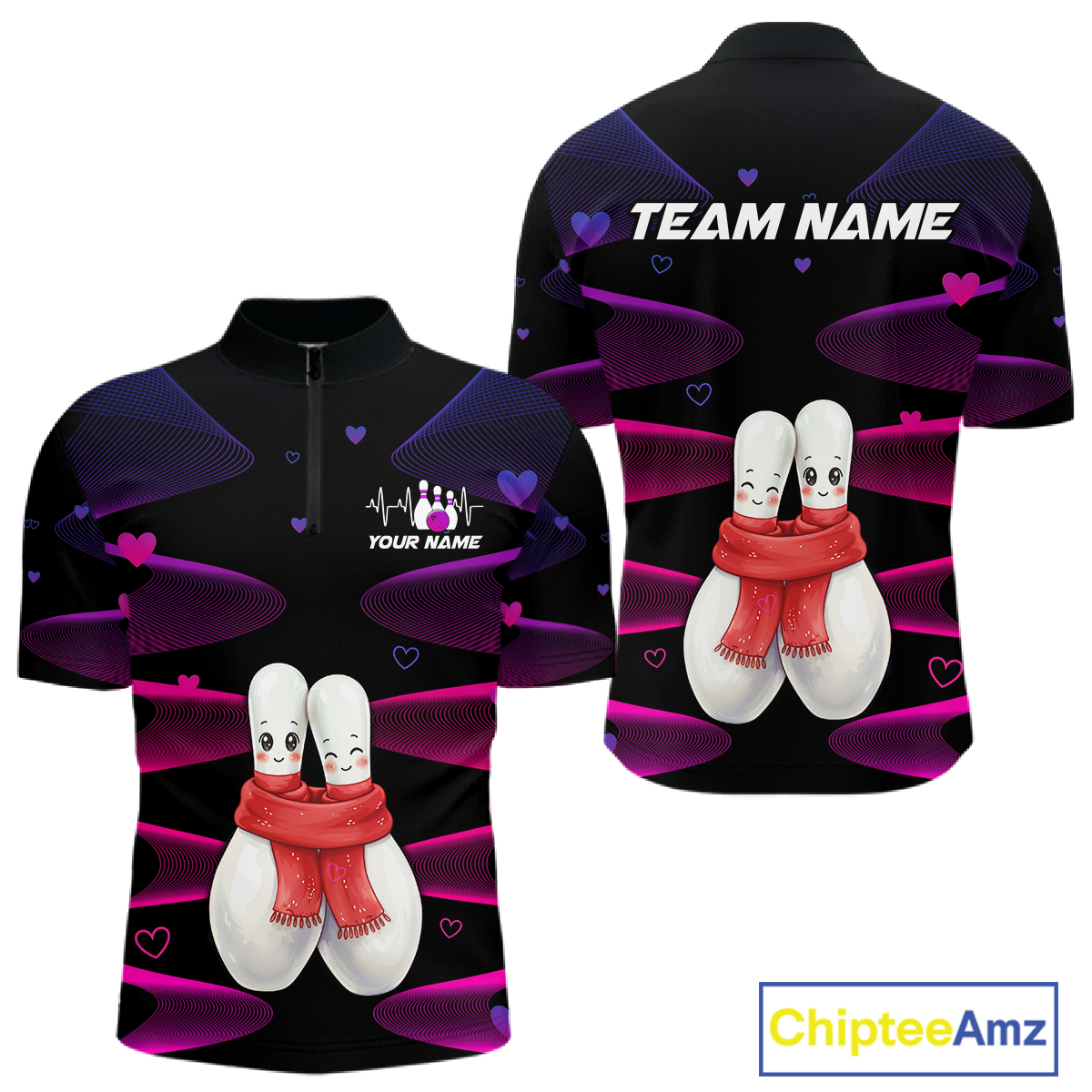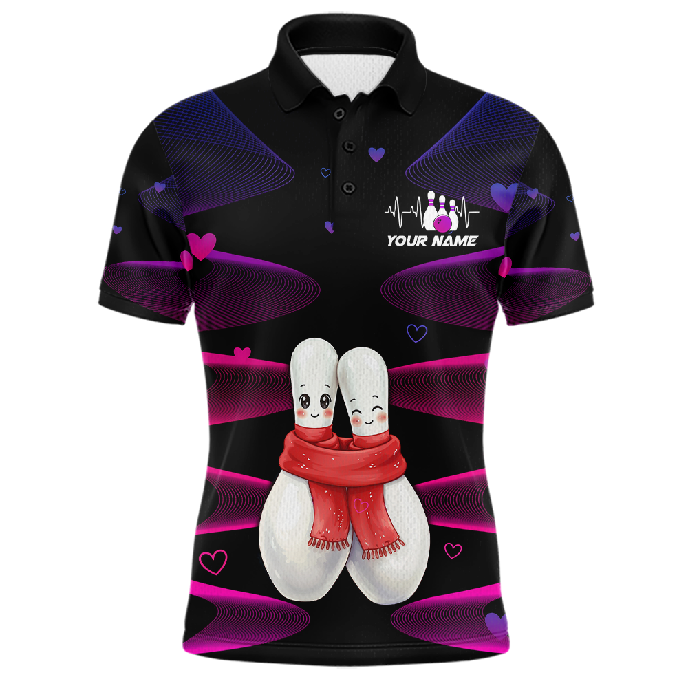 Personalized Valentine Bowling Shirt for Couples Bowling Jersey Pink Bowling Gift Polo & 1/4-Zip QZT870