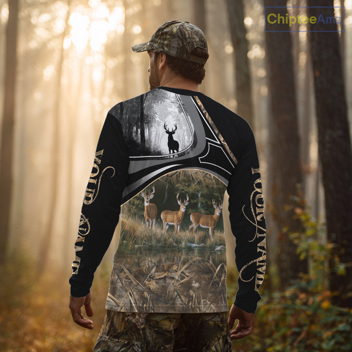 Inspired by the thrill of the hunt and the beauty of the outdoors, this shirt combines durability, comfort, and a unique hunting vibe. Customize it with your name or preferred design elements — from deer graphics to scenic landscapes — to create a one-of-a-kind piece. A perfect gift for passionate deer hunters and outdoor lovers, especially during hunting season.