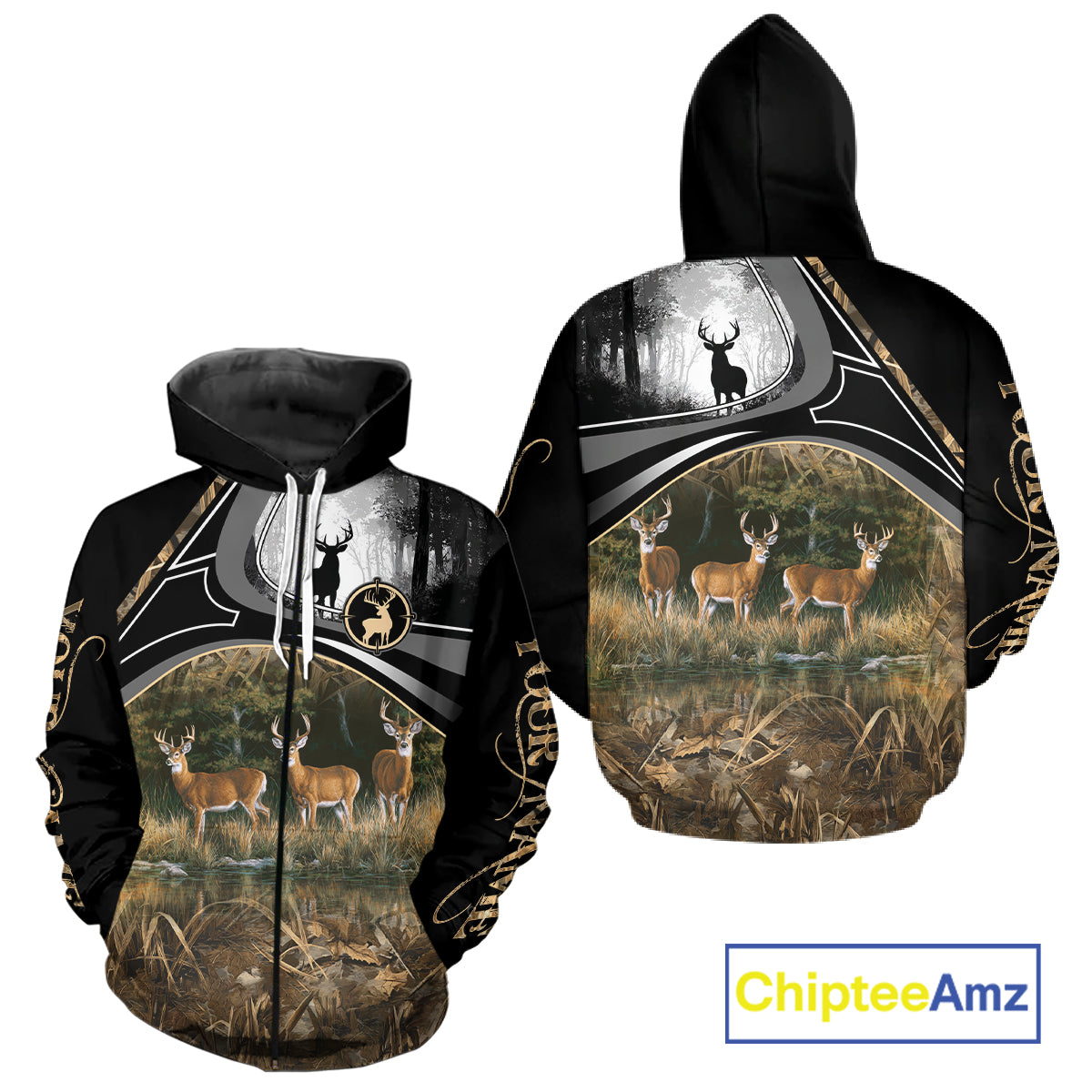 Personalized Whitetail Deer Hunting 3D All Over Printed Hoodie Brown Camouflage, Hunting Gift NHT366