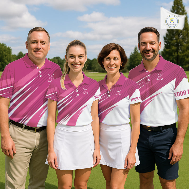 Pink and white Mens golf polo shirts custom golf tops for mens, personalized golf gifts NQS11273