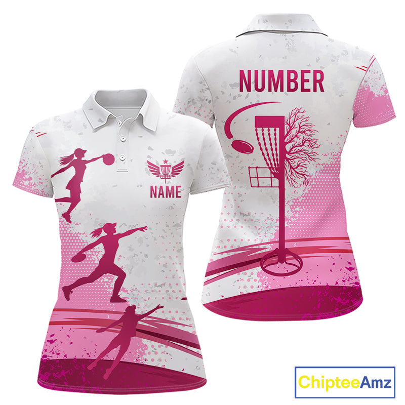 Pink Disc Golf Basket Womens Polo Shirt Custom Name & Number Team Disc Golf Shirt NHN0035