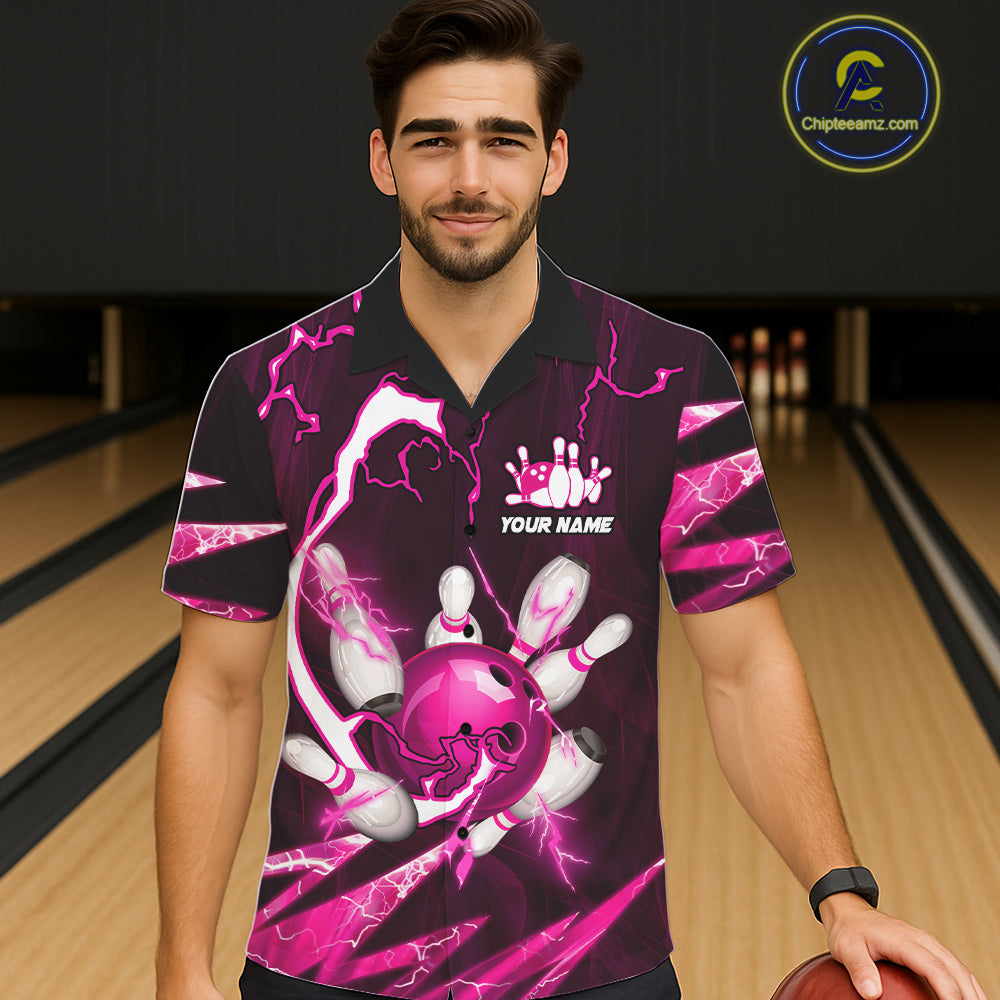 Pink Thunder Lightning bowling ball and pins jersey Custom Team Bowling Hawaiian Shirt NQS11283