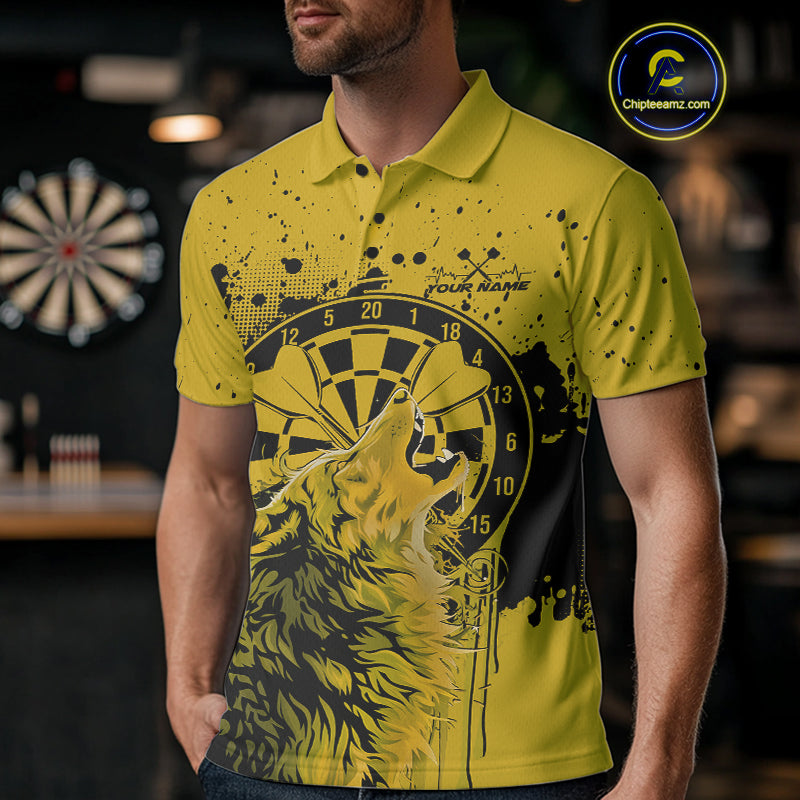 Custom Grunge Splatter Yellow Wolf Dart Men Polo Shirt, Wolf Dart Team Jerseys IPHW10018