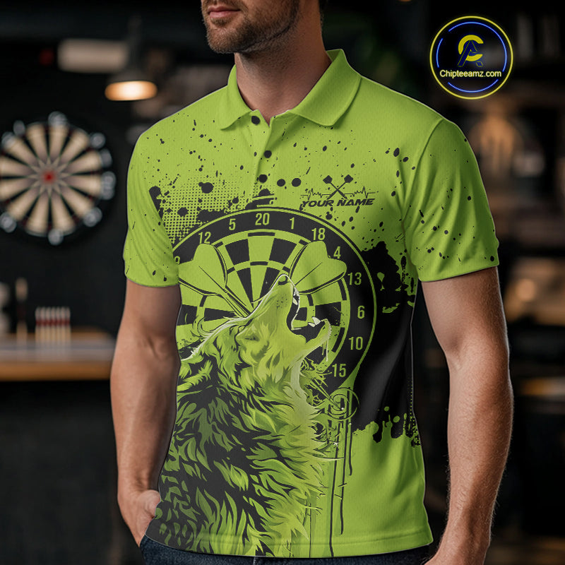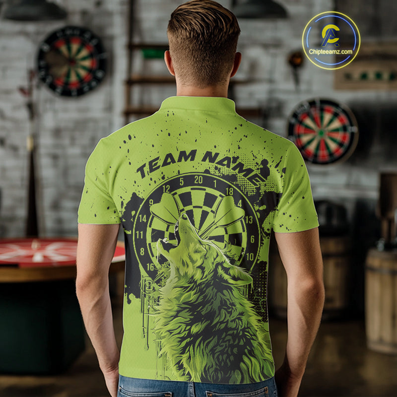 Custom Grunge Splatter Olive Green Wolf Dart Men Polo Shirt, Wolf Dart Team Jerseys IPHW10019