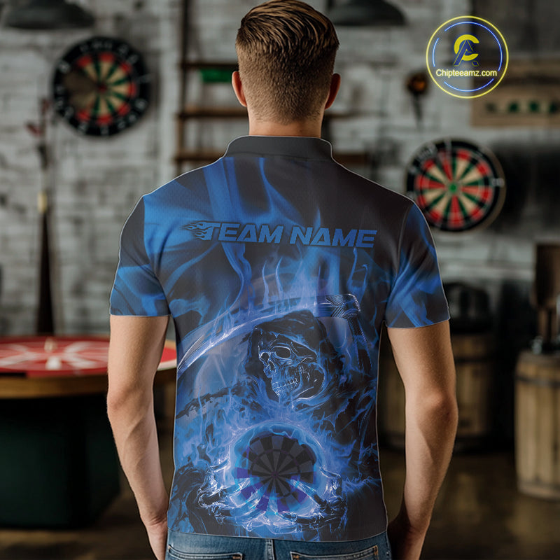 Custom Blue Flame Grim Reaper Halloween Dart Men Polo Shirts For Team, Dart Jerseys IPHW10030