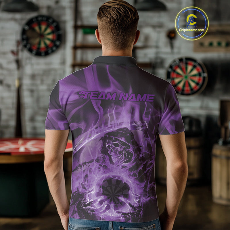 Custom Purple Flame Grim Reaper Halloween Dart Men Polo Shirts For Team, Dart Jerseys IPHW10032