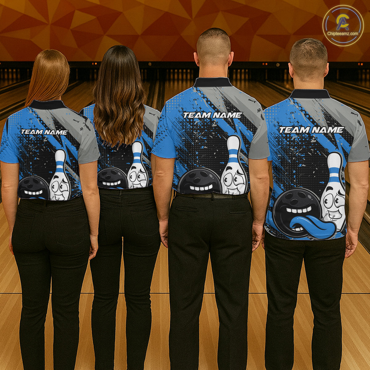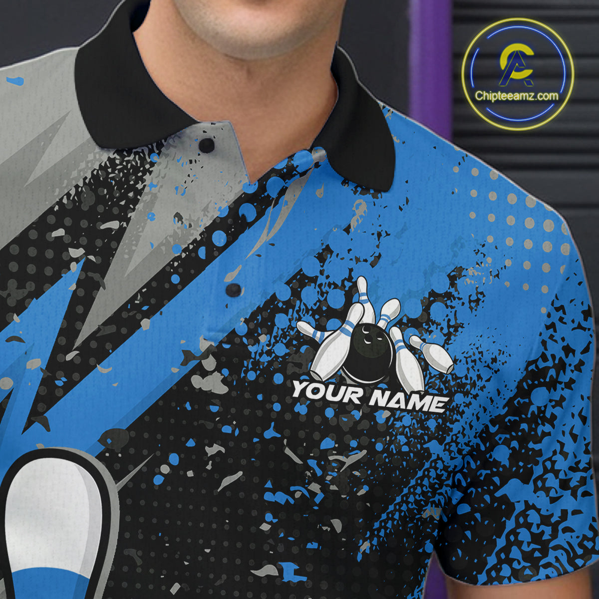 Custom Funny Bowling Polo Shirt For Men, Blue Bowling Ball And Pin Bowling Jersey IPHW10260