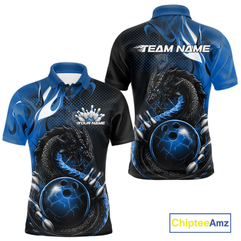 Custom Black And Blue Dragon Bowling Jerseys, Dragon Bowling Team Men Polo Shirt IPHW10268