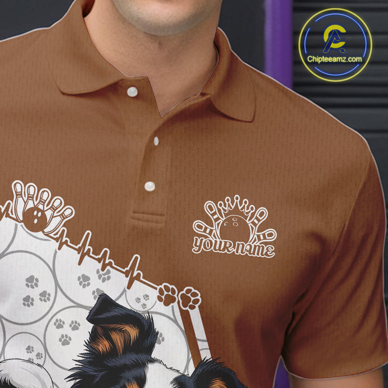 Custom Cute Funny Border Collie Dog Bowling Men Polo Shirts, Dog Lovers Bowling Shirt IPHW10288