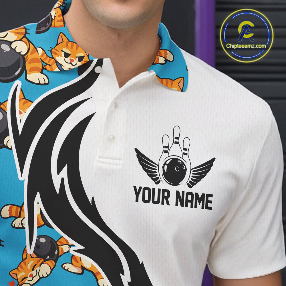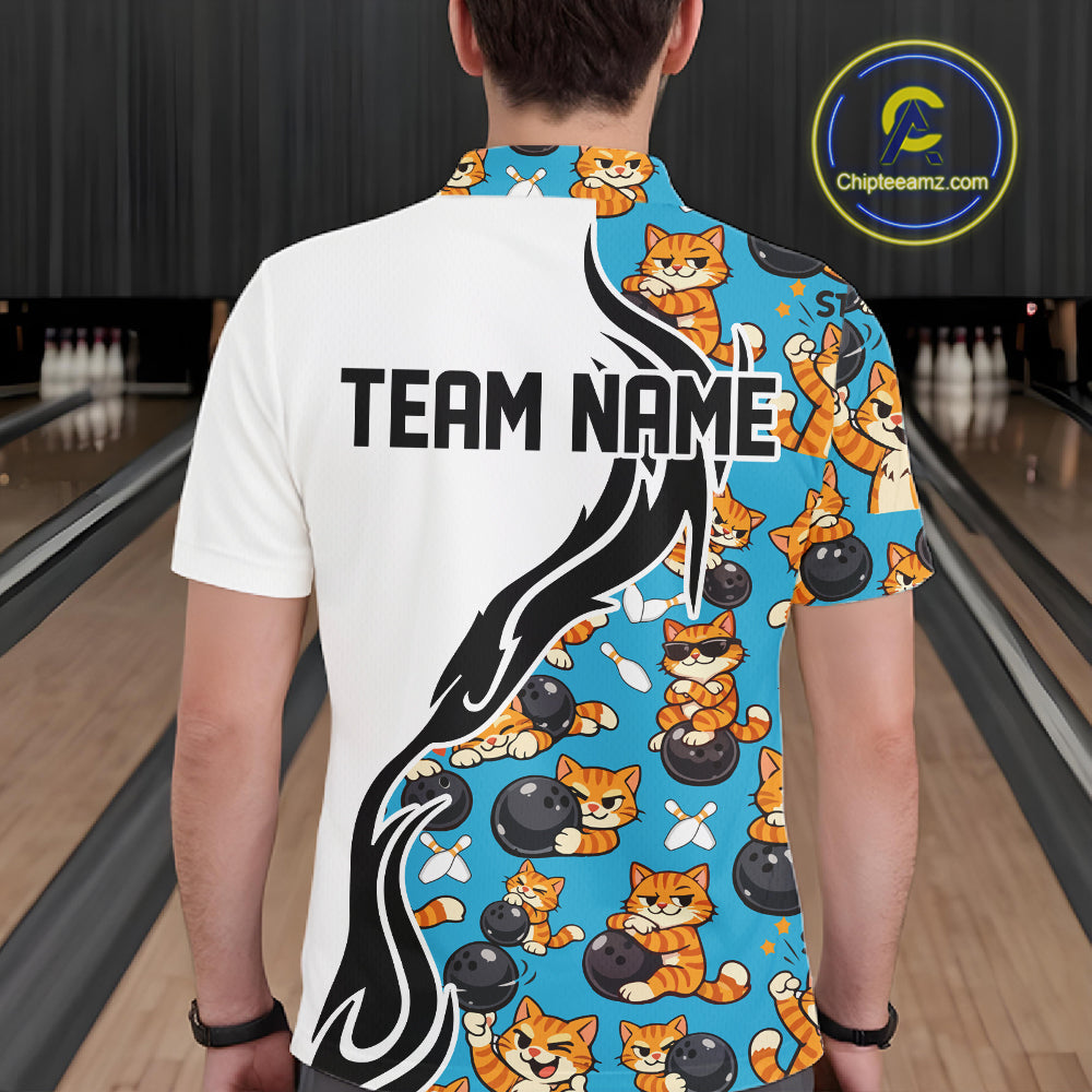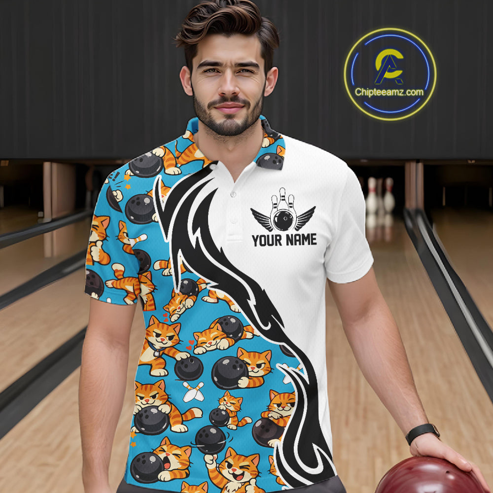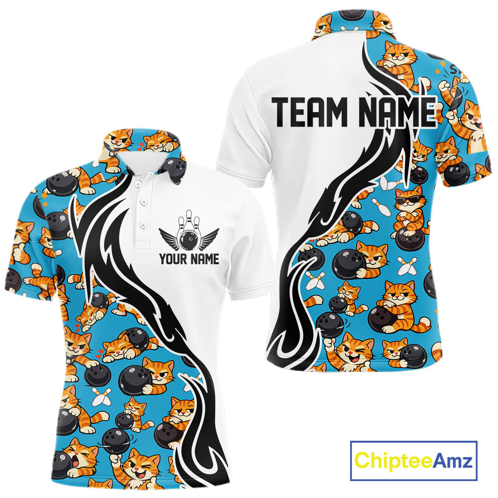 Custom Cute Funny Ginger Tabby Cat Bowling Men Polo Shirts, Cat Bowling Team Shirt IPHW10320