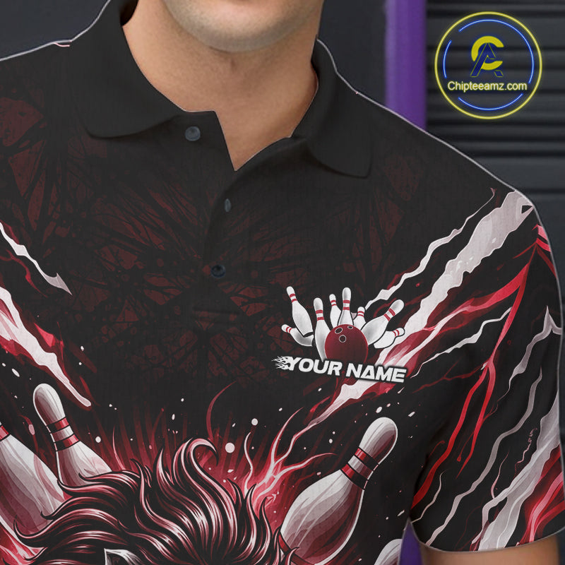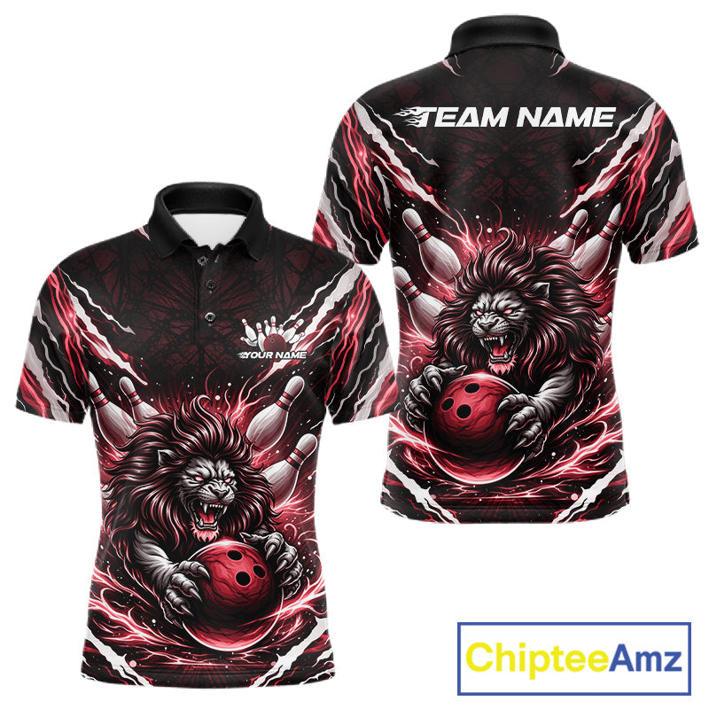Custom Black And Red Lion Bowling Jerseys, Lion Bowling Tournament Men Polo Shirt IPHW10353