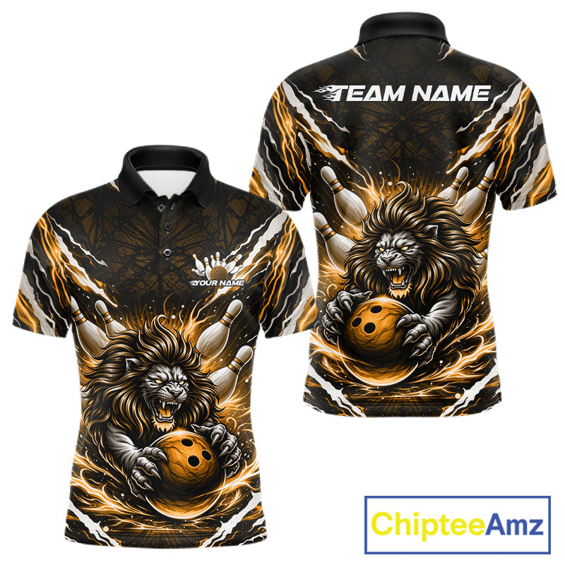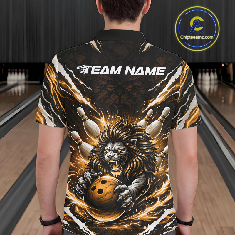 Custom Black And Gold Lion Bowling Jerseys, Lion Bowling Tournament Men Polo Shirt IPHW10354