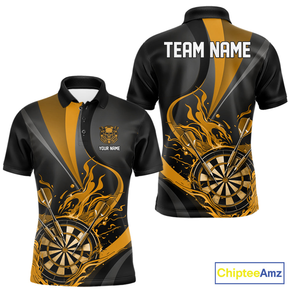 Custom Black And Yellow Flame Dartboard Darts Team Men Polo Shirts, Darts Jerseys IPHW10381