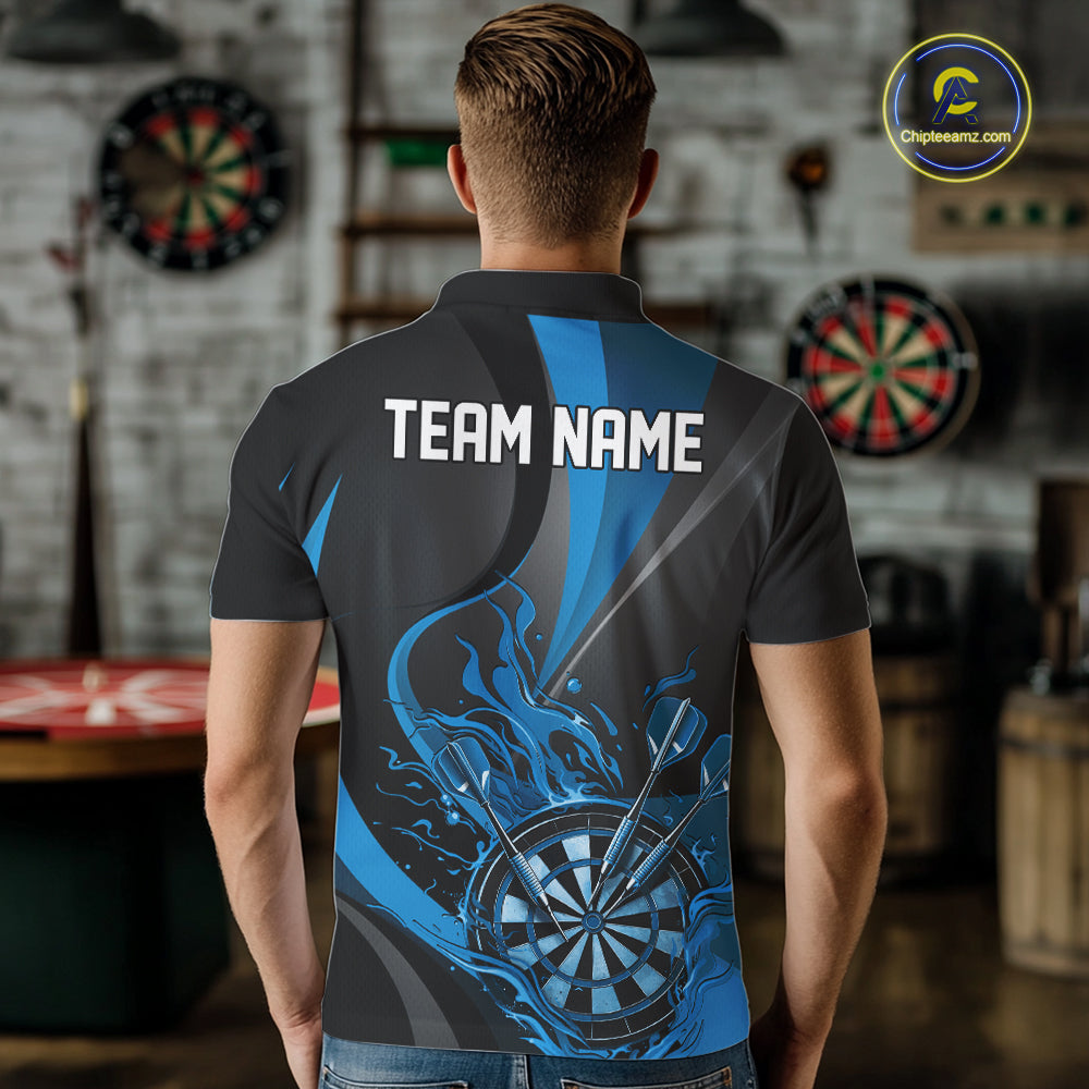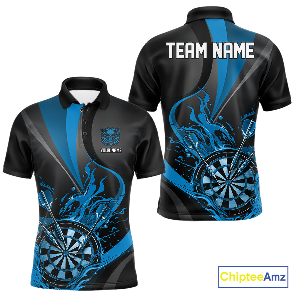 Custom Black And Blue Flame Dartboard Darts Team Men Polo Shirts, Darts Jerseys IPHW10382