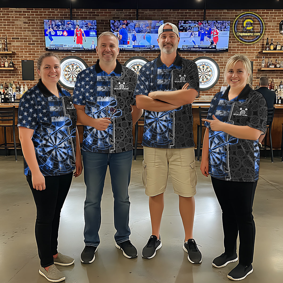 Custom Blue Lightning US Flag Dartboard Patriotic Dart Team Men Polo Shirt Dart Jerseys IPHW10388