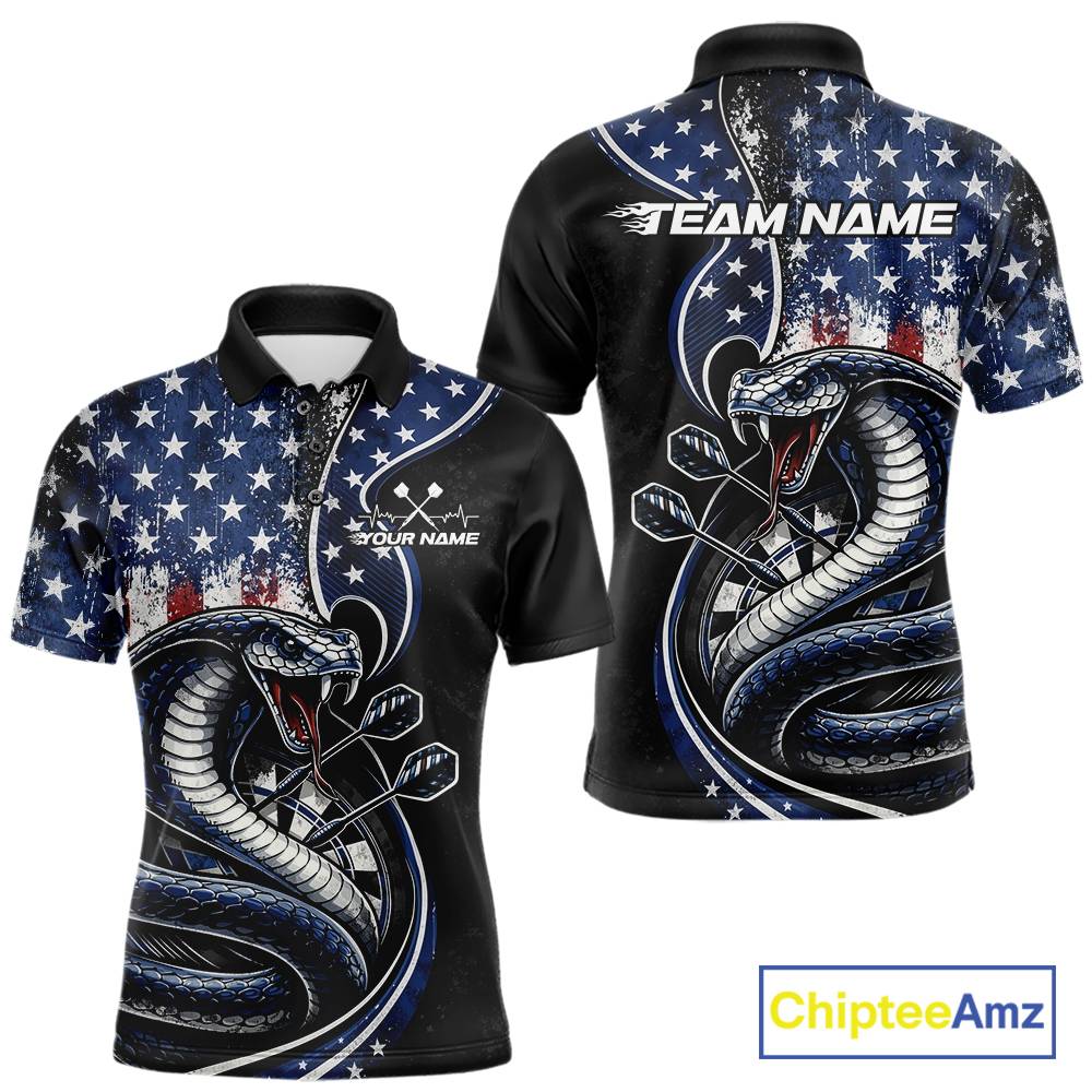 Custom Grunge US Flag Patriotic Cobra Snake Dart Men Polo Shirt, Dart Jerseys IPHW10392