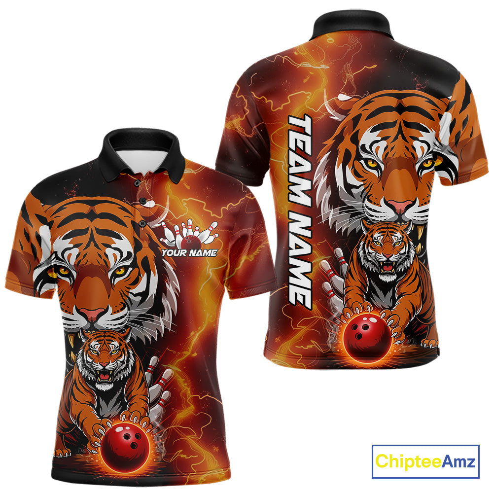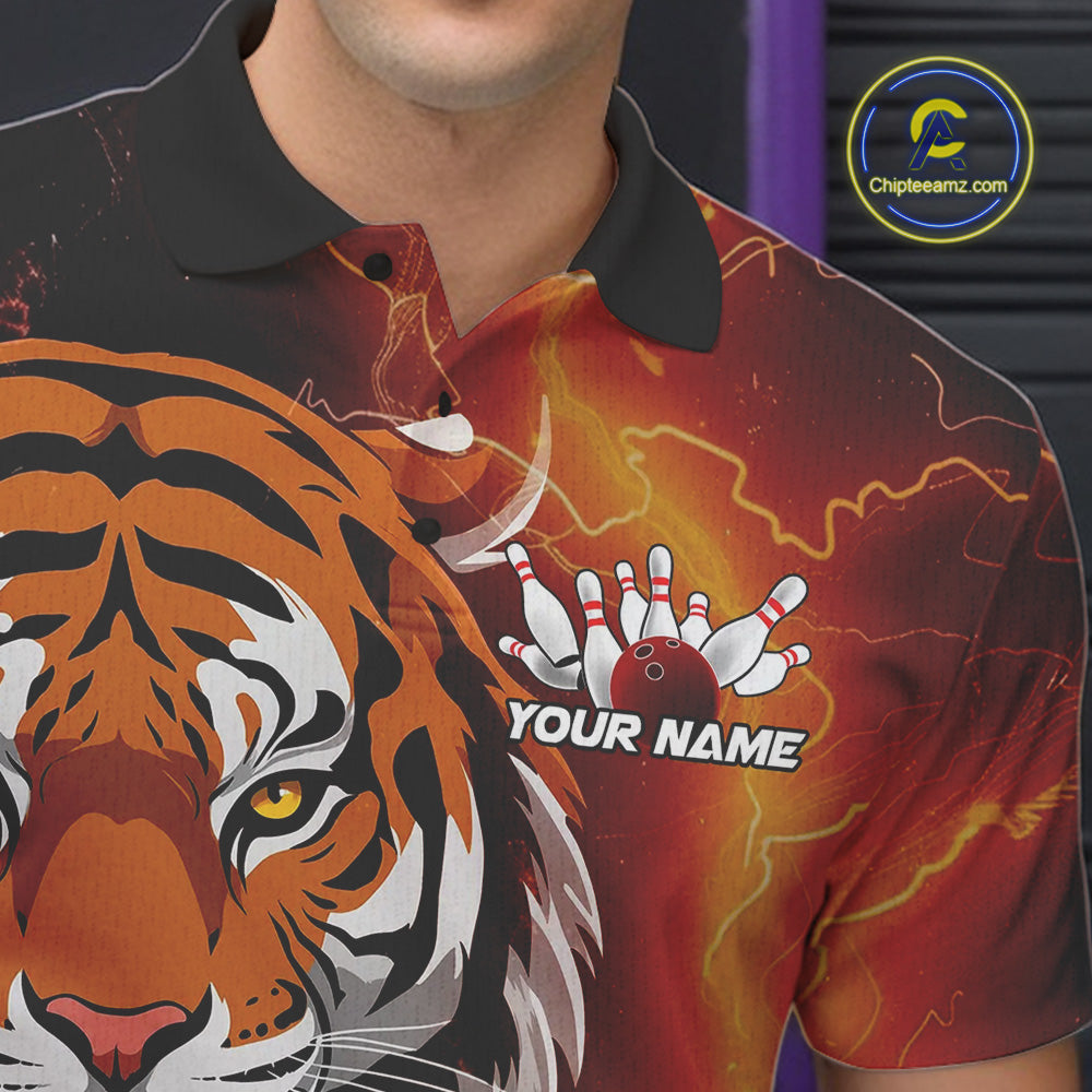 Custom Thunder Lightning Tiger Bowling Polo Shirts For Men, Bowling Team Outfit IPHW9093