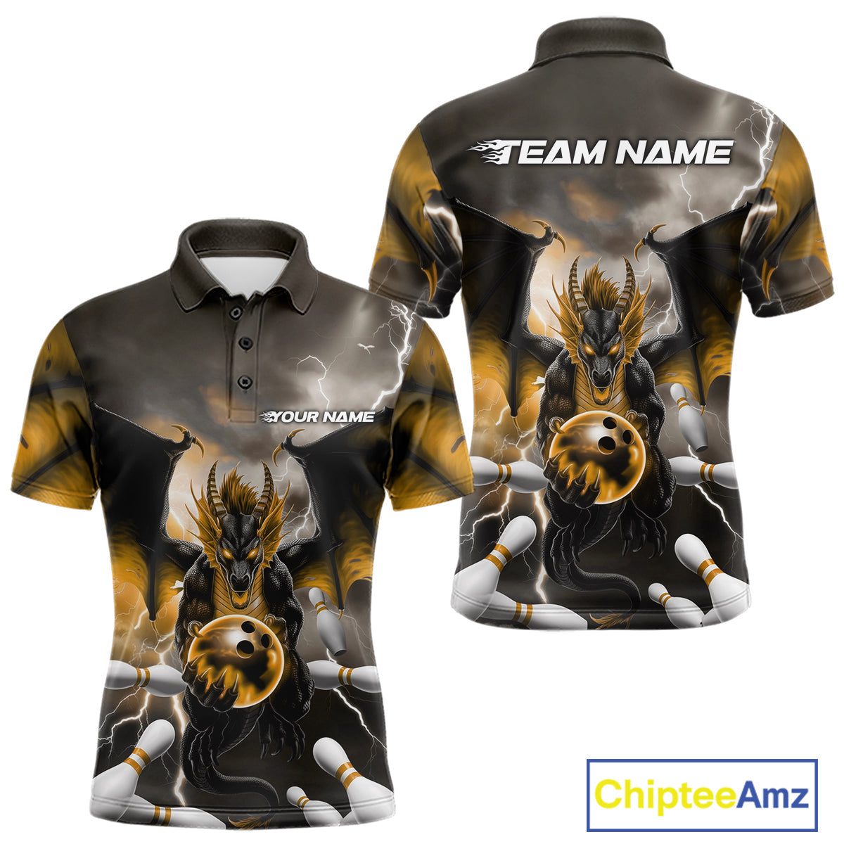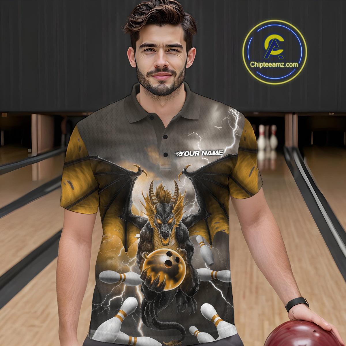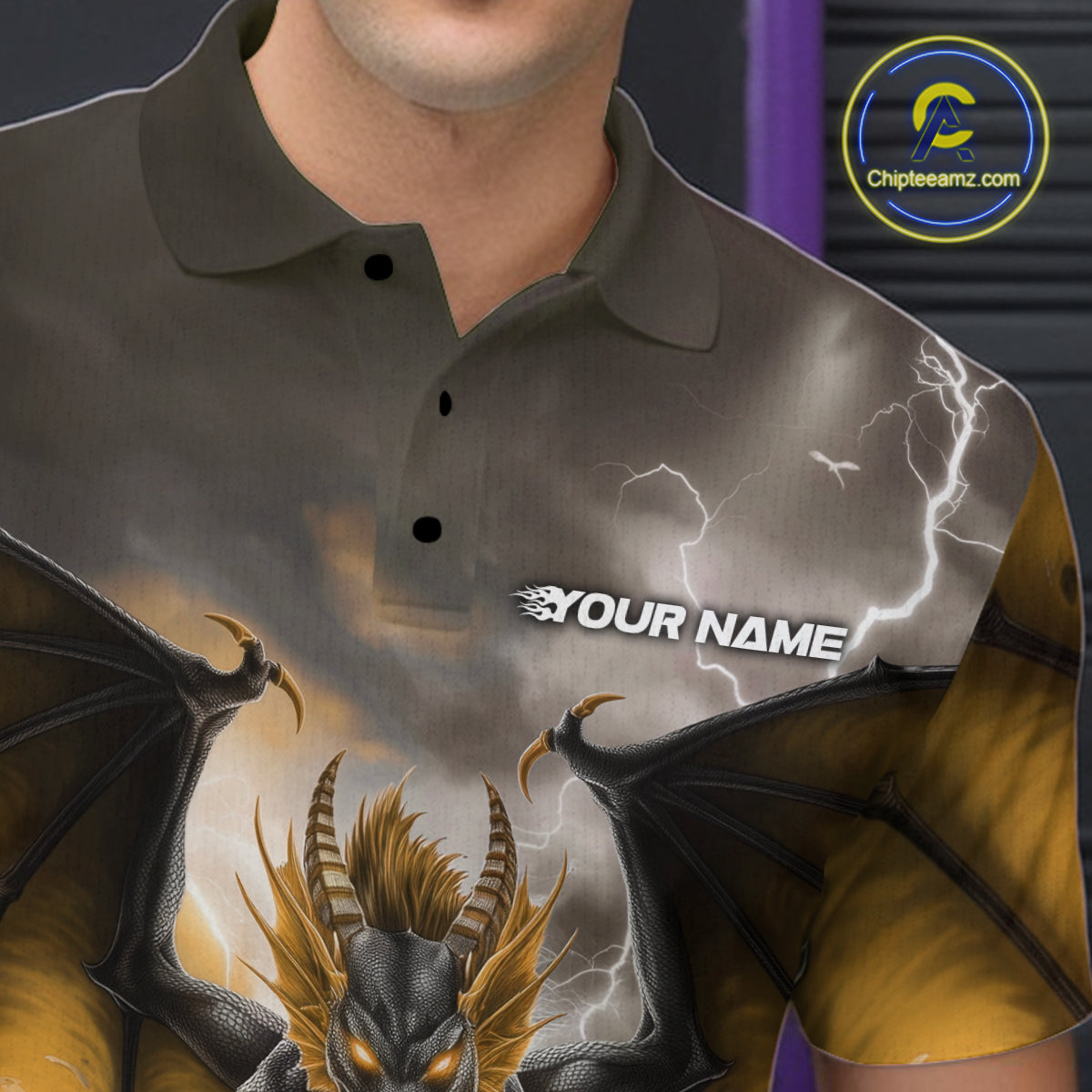 Custom Yellow Thunder Lightning Dragon Bowling Polo Shirts For Men, Team Uniform IPHW9105