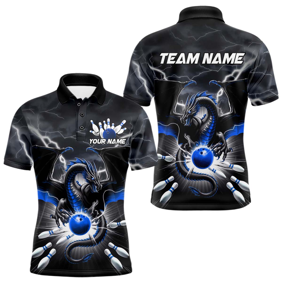 Custom Thunder Lightning Blue Dragon Bowling Team Polo Shirts For Men, Bowling Jerseys IPHW9111