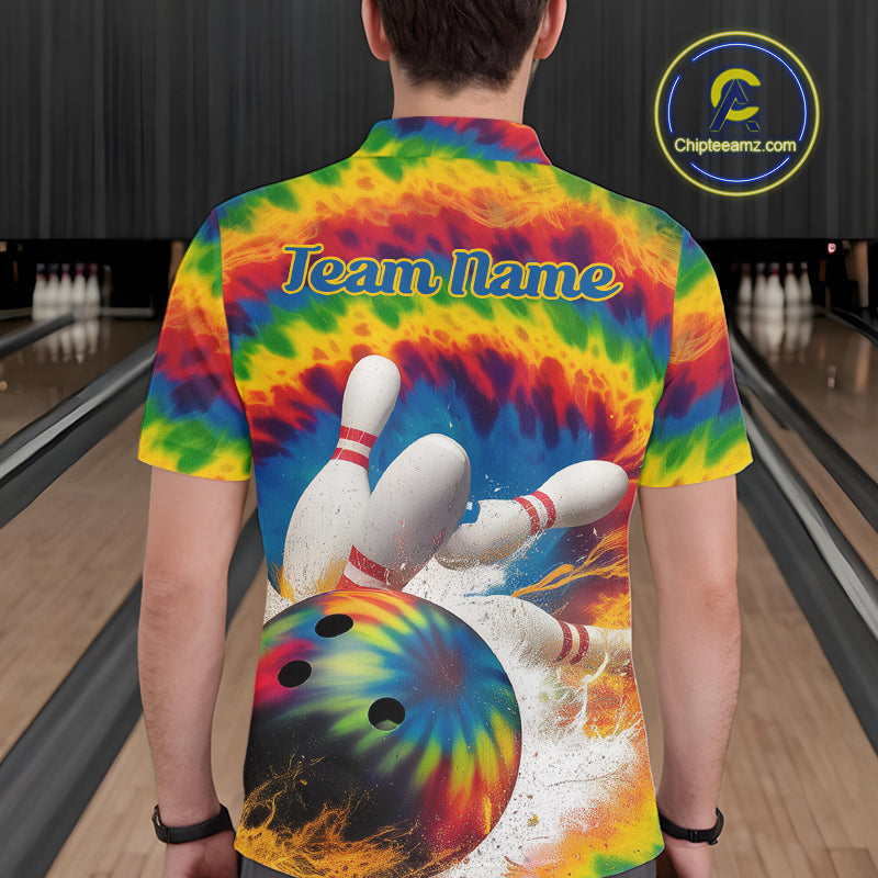 Custom Colorful Tie Dye Bowling Polo Shirts For Men, Rainbow Bowling Outfit IPHW9114