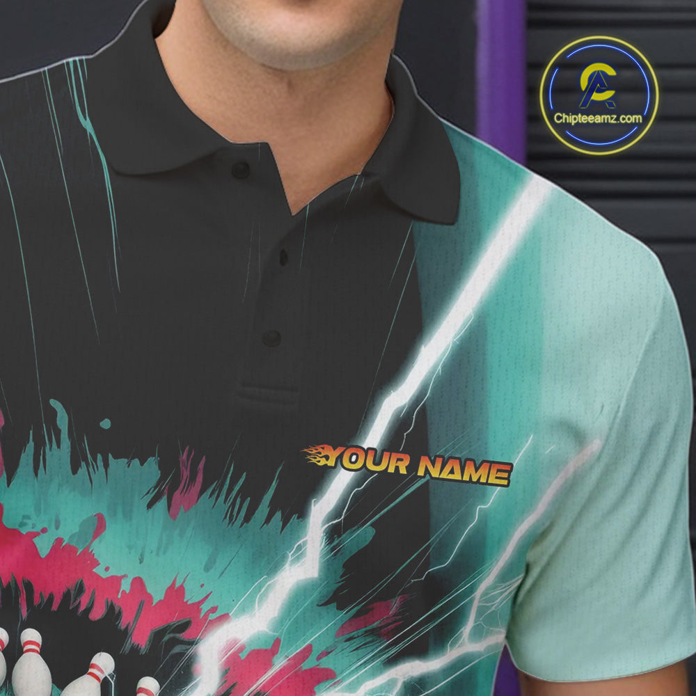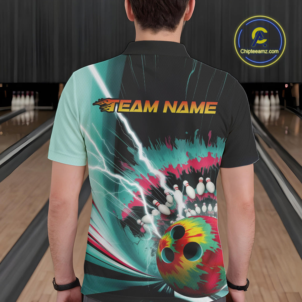 Custom Colorful Tie Dye Bowling Polo Shirts For Men, Rainbow Bowlers Outfit IPHW9117