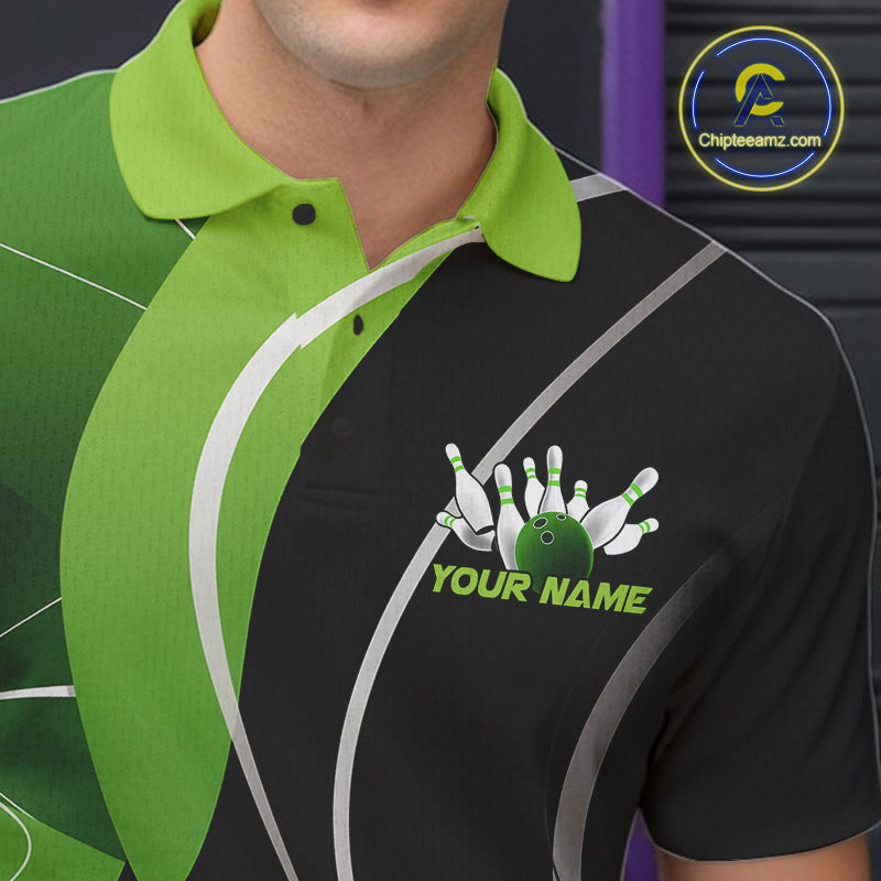 Custom Black And Green Bowling Jerseys, Men Bowling Polo Shirt Team Uniform IPHW9225