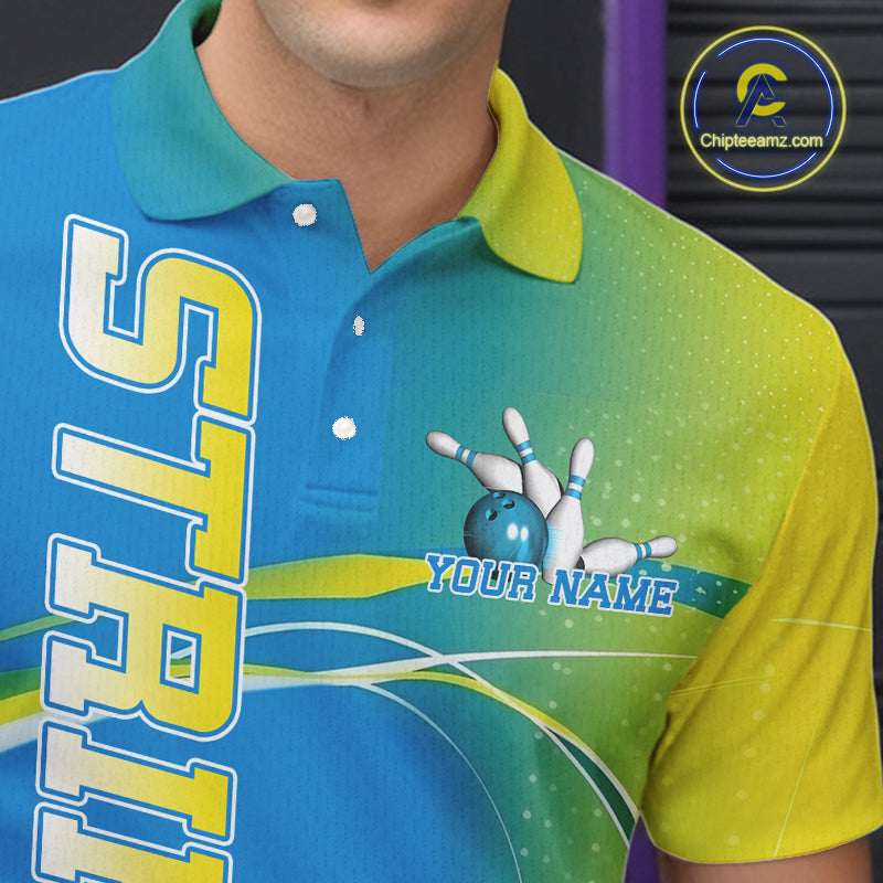 Custom Blue And Yellow Strike Bowling Polo Shirts For Men, Strike Bowling Team Jersey IPHW9233