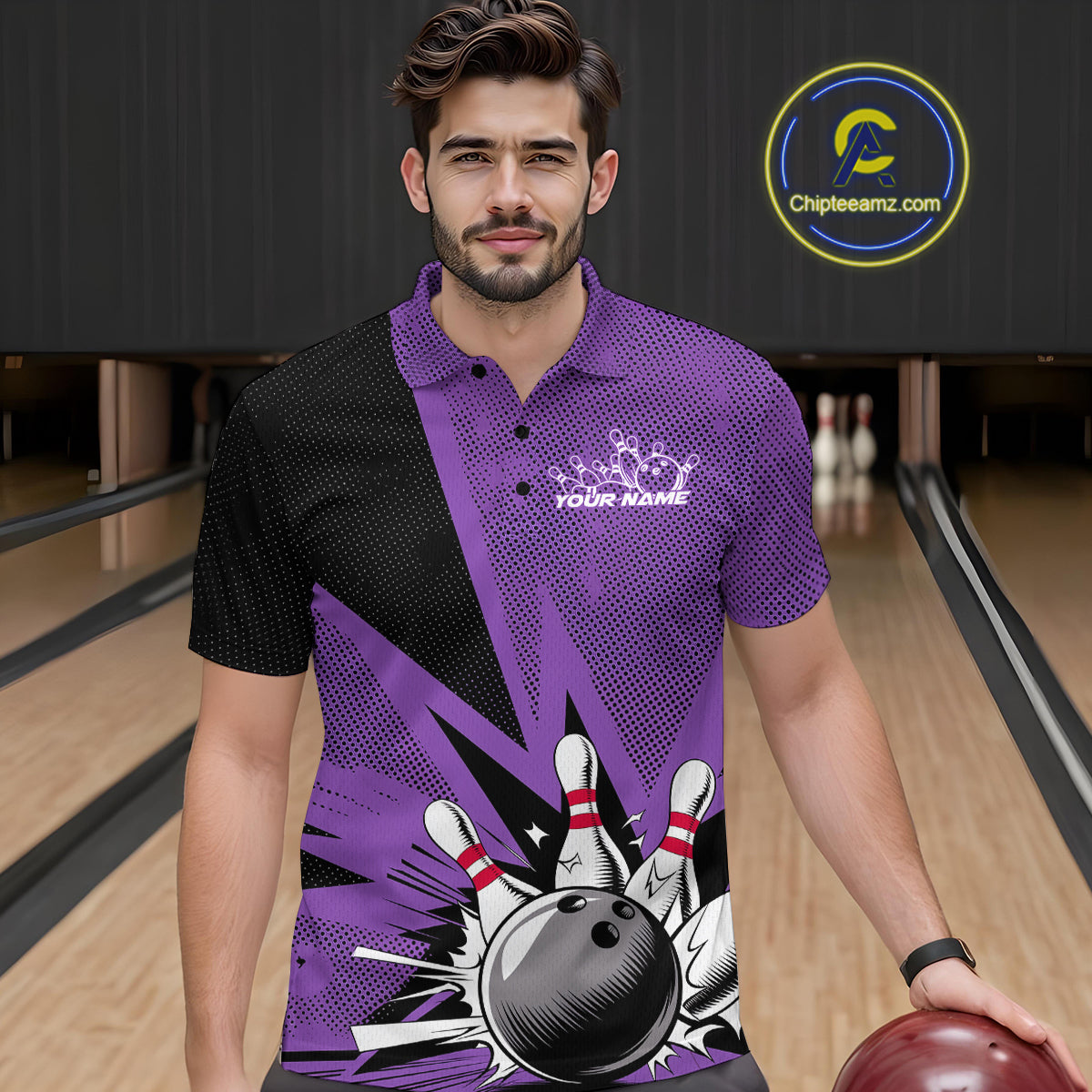 Custom Purple Bowling Jerseys, Bowling Team Men Polo Shirts Bowling League Shirt IPHW9391