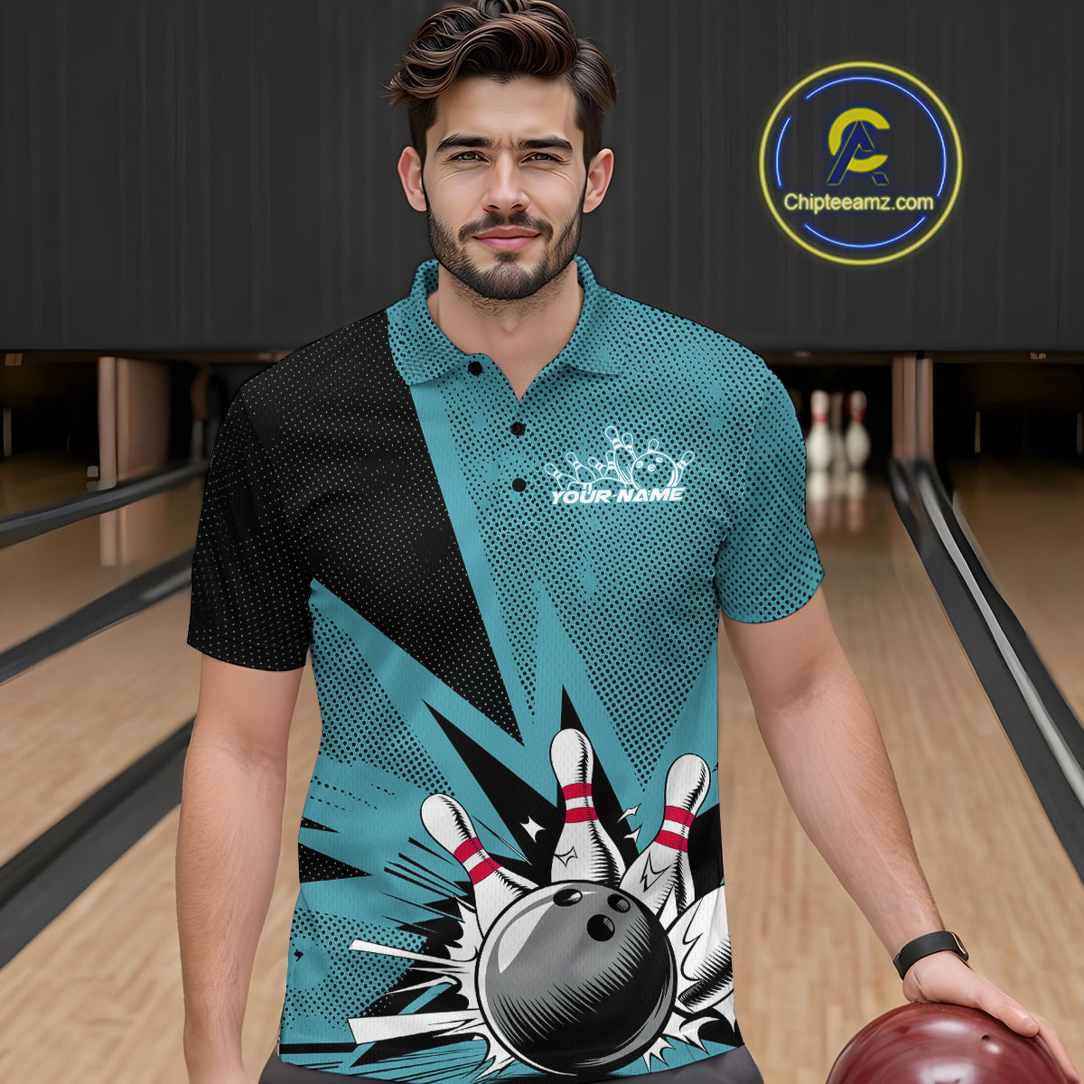 Custom Blue Bowling Jerseys, Bowling Team Men Polo Shirts Bowling League Shirt IPHW9393