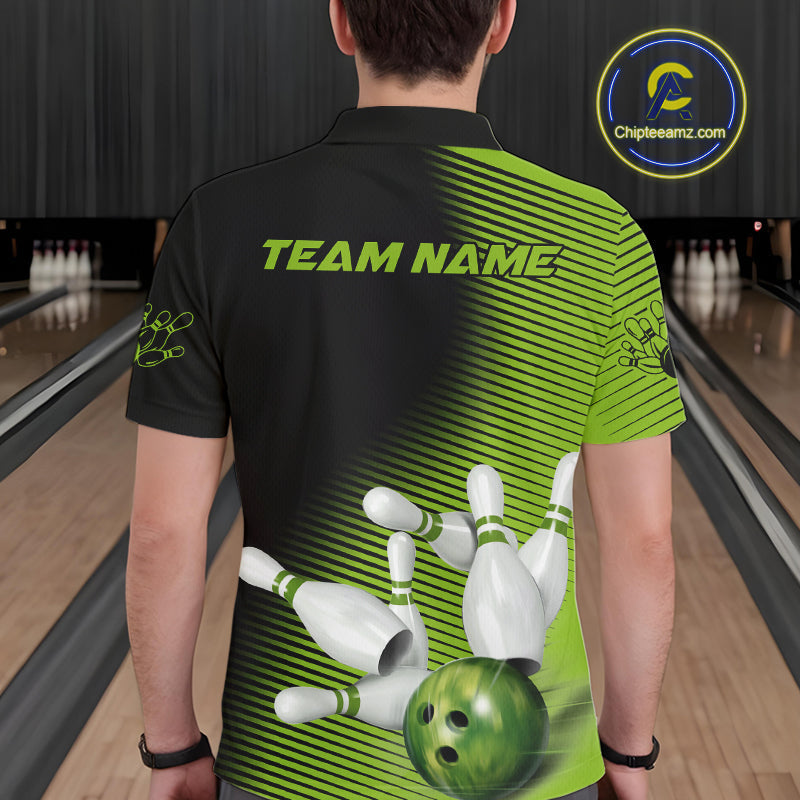 Custom Black And Green Bowling Polo Shirts For Men, Green Bowling Jerseys IPHW9400
